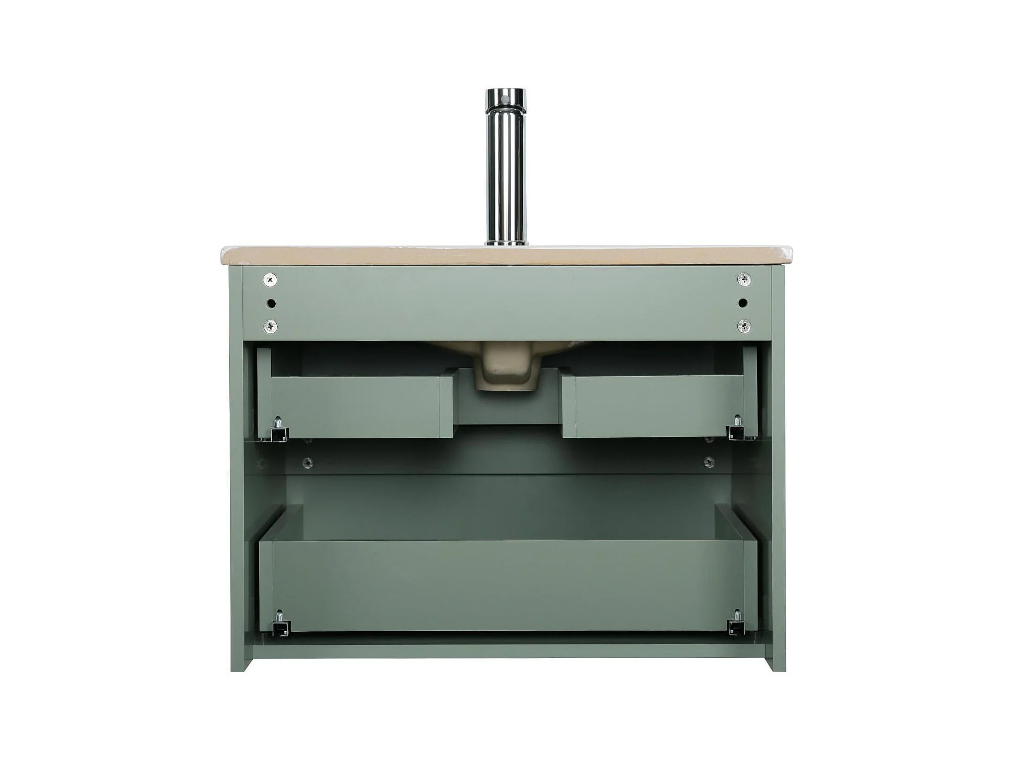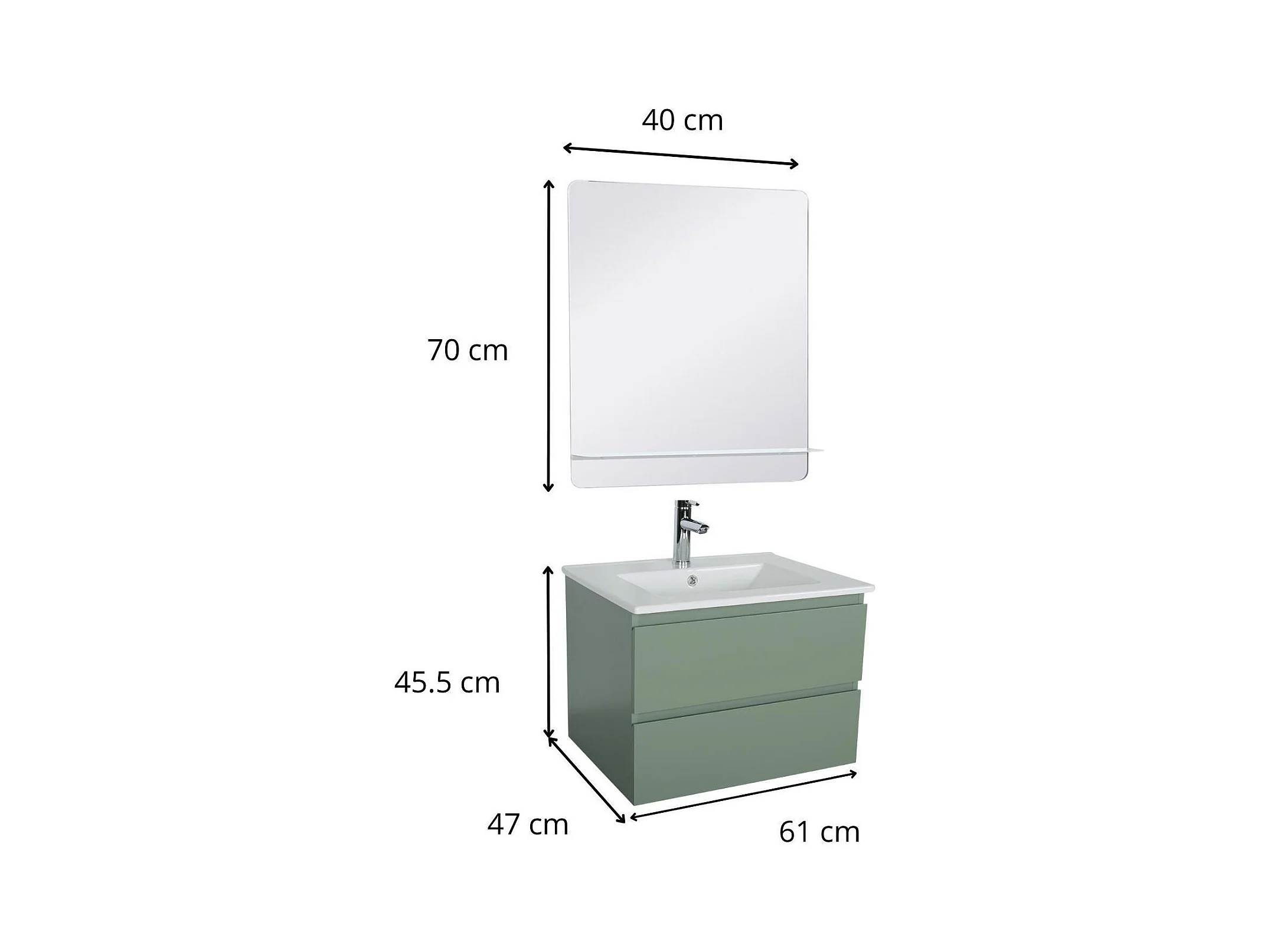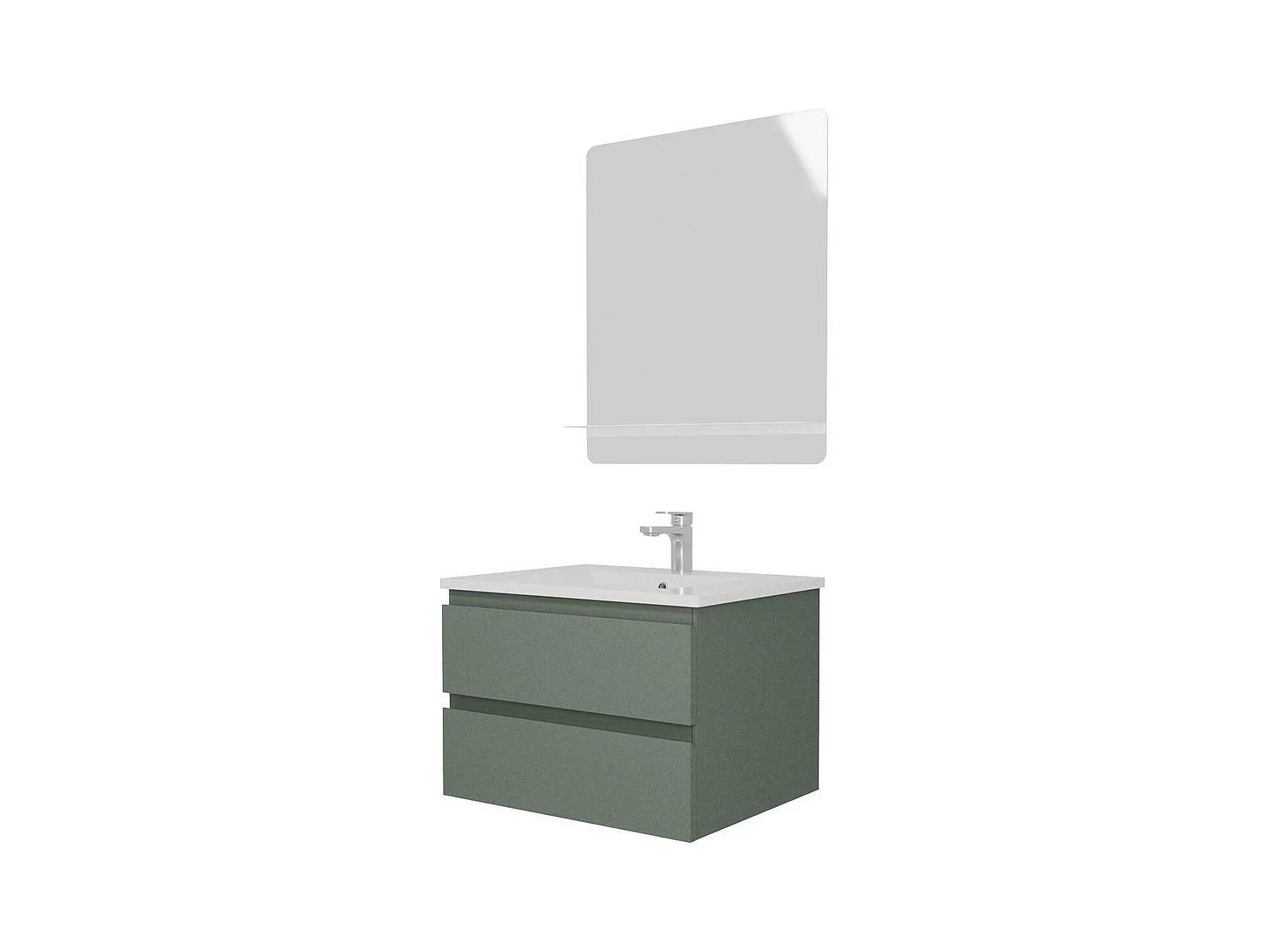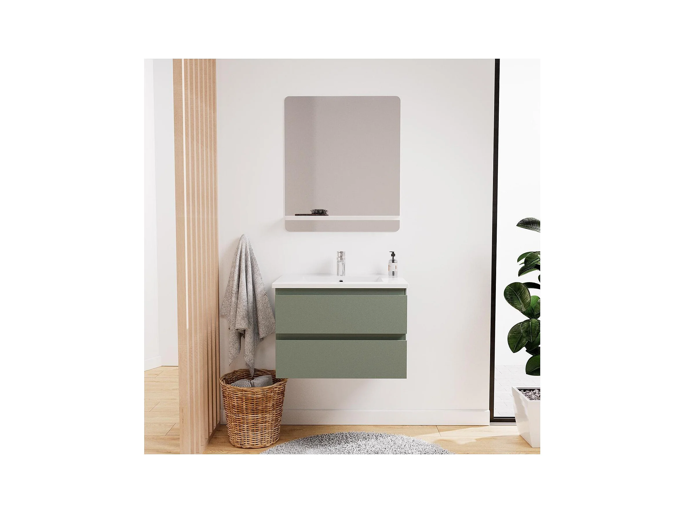 Ensemble simple vasque 60cm avec plan céramique, robinet chromé et miroir