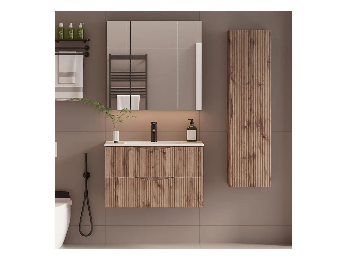 Ensemble meuble simple vasque encastrée 80cm et colonne Tao Bois