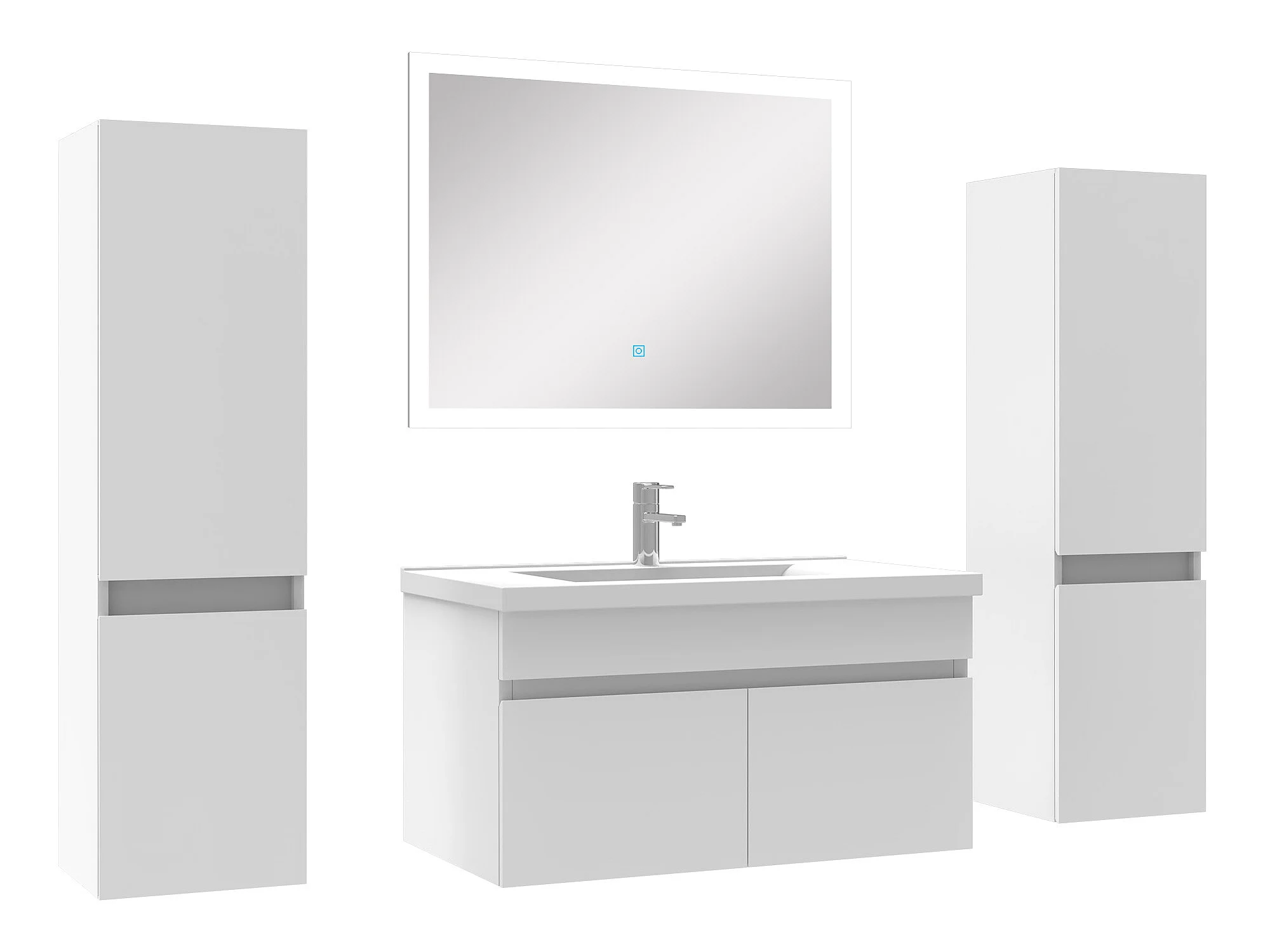 Ensemble meuble simple vasque L.80cm avec colonne + miroir Blanc