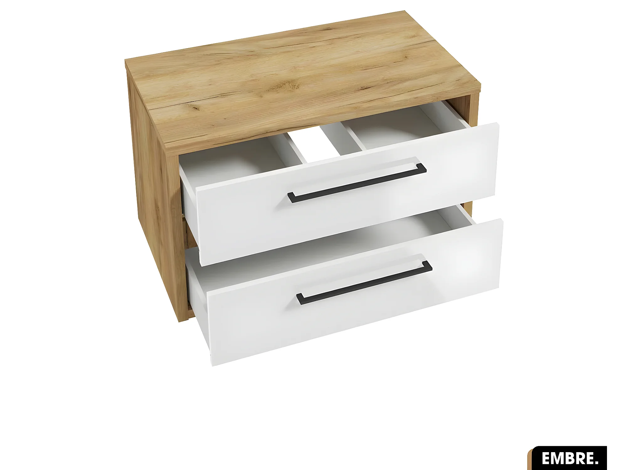 Ensemble meuble sous vasque avec vasque à poser - Siphon OFFERT | EMBRE | Blanc | 80 x 50 x 45 cm