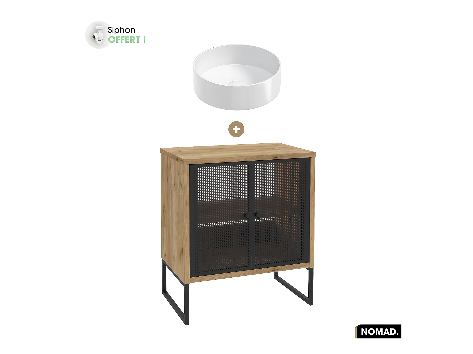 Ensemble meuble sous vasque avec vasque à poser - Siphon OFFERT | NOMAD | OAK | 70 x 80 x 43 cm