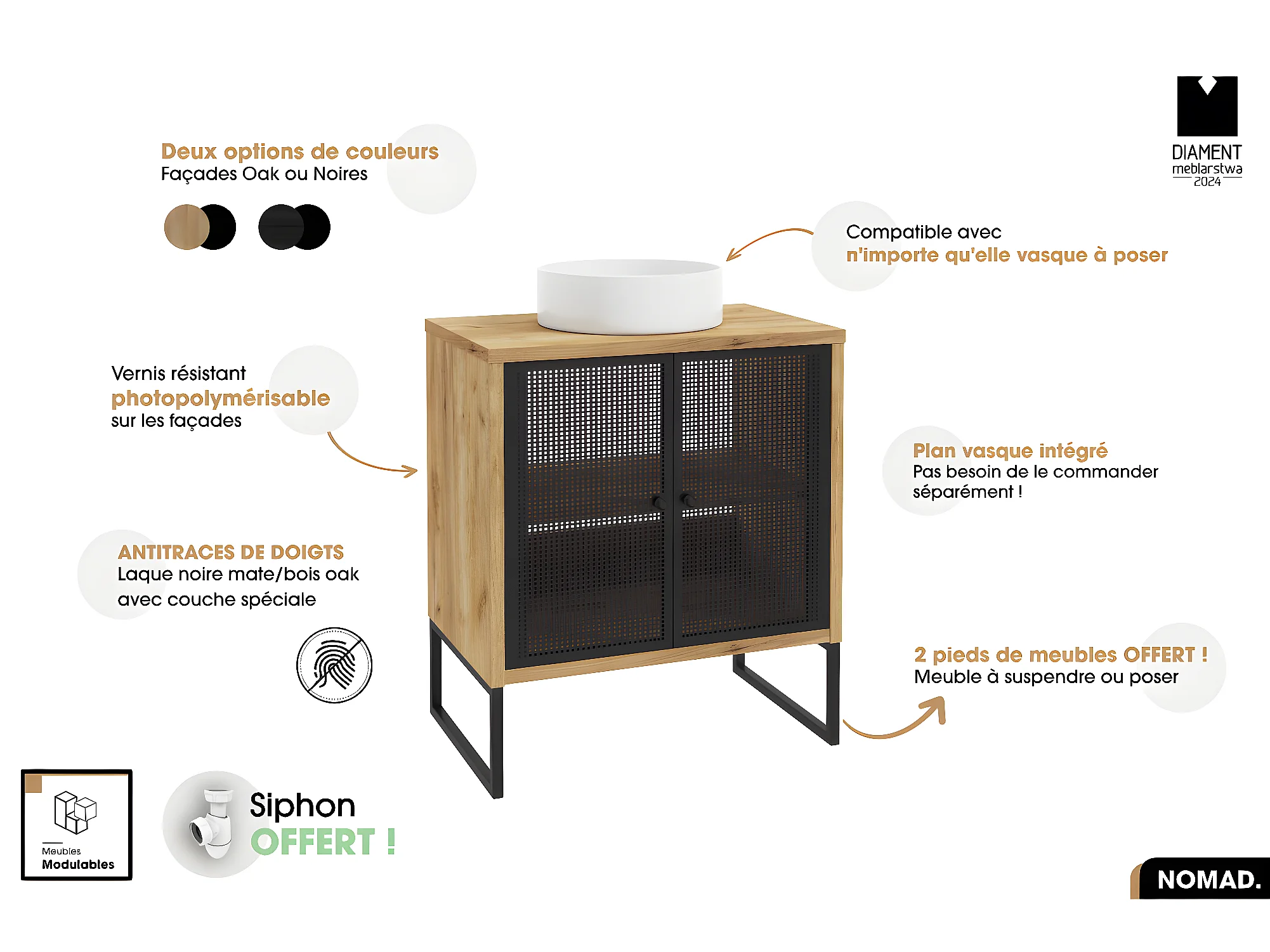 Ensemble meuble sous vasque avec vasque à poser - Siphon OFFERT | NOMAD | OAK | 70 x 80 x 43 cm