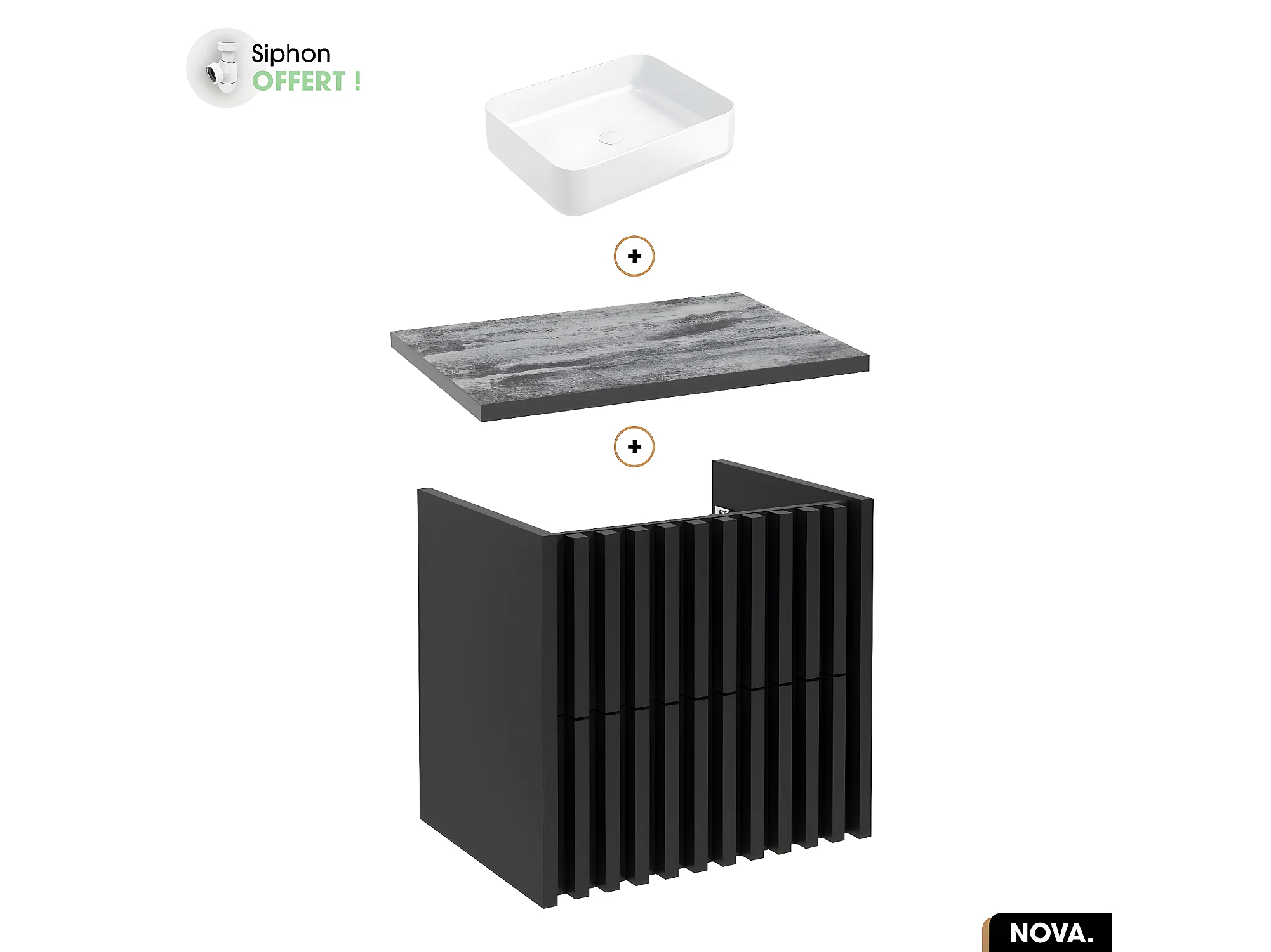 Ensemble meuble sous vasque avec vasque à poser - Siphon OFFERT | NOVA | NOIR | 60 x 56 x 45 cm