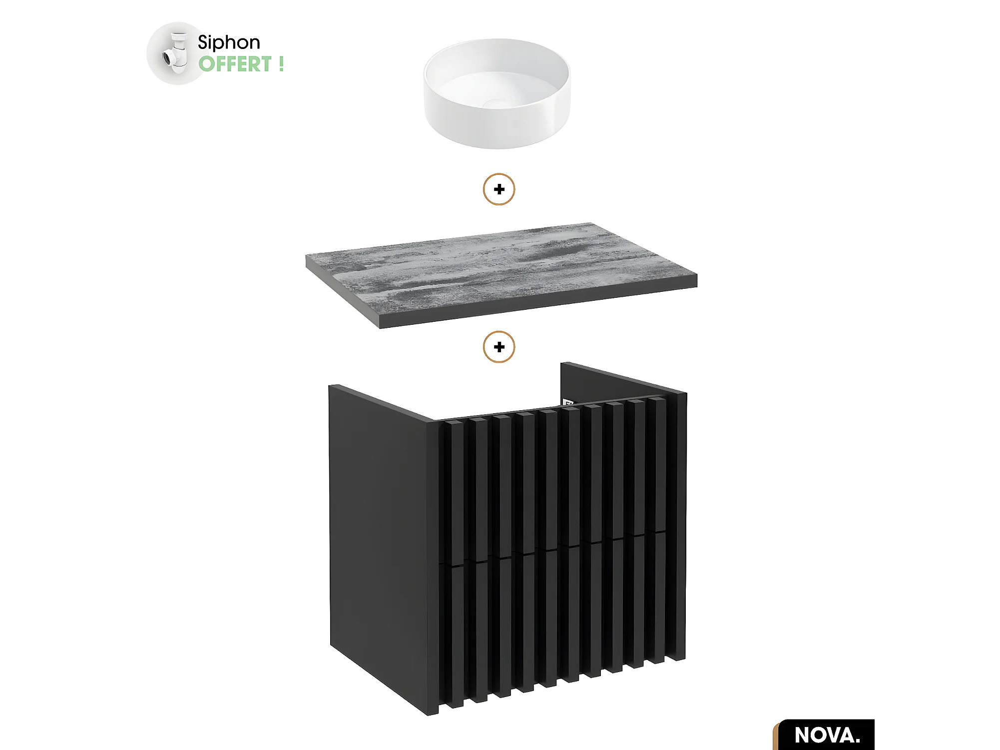 Ensemble meuble sous vasque avec vasque à poser - Siphon OFFERT | NOVA | NOIR | 60 x 56 x 45 cm