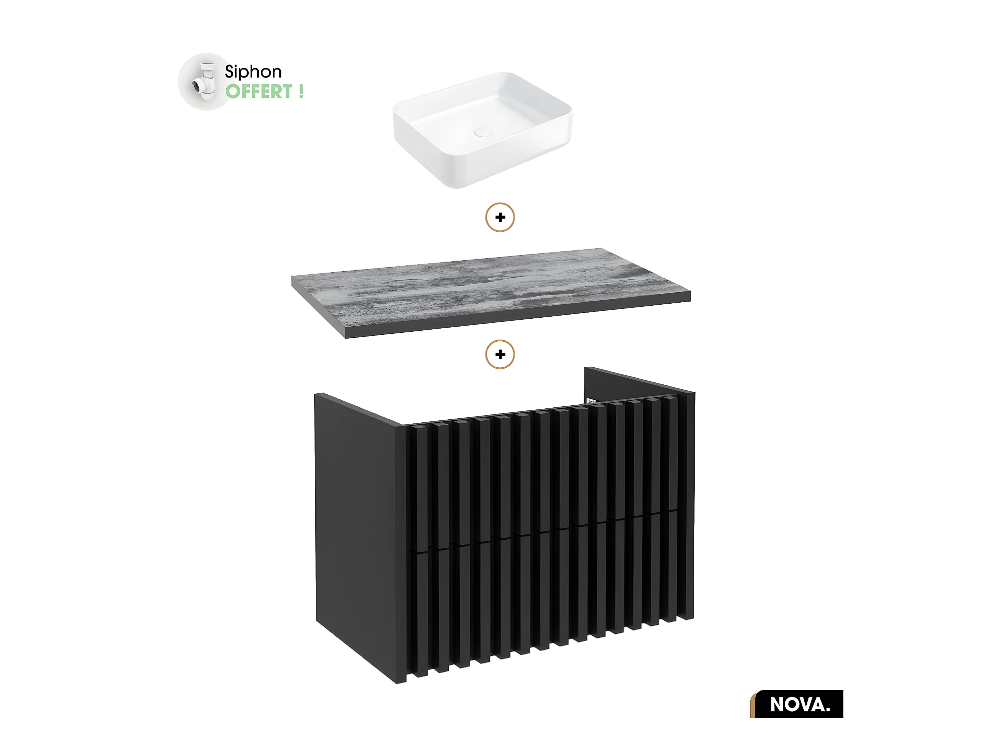 Ensemble meuble sous vasque avec vasque à poser - Siphon OFFERT | NOVA | NOIR | 80 x 56 x 45 cm