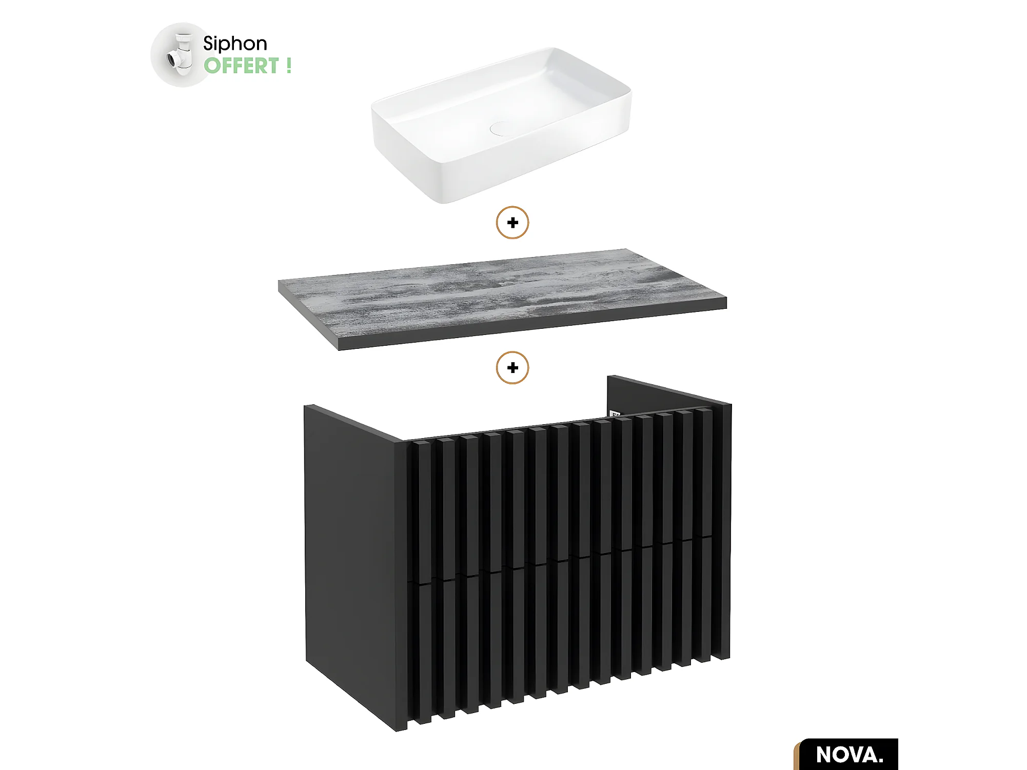Ensemble meuble sous vasque avec vasque à poser - Siphon OFFERT | NOVA | NOIR | 80 x 56 x 45 cm