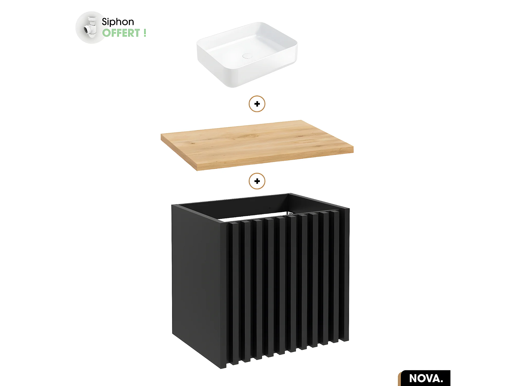 Ensemble meuble sous vasque avec vasque à poser - Siphon OFFERT | NOVA | OAK | 60 x 56 x 45 cm