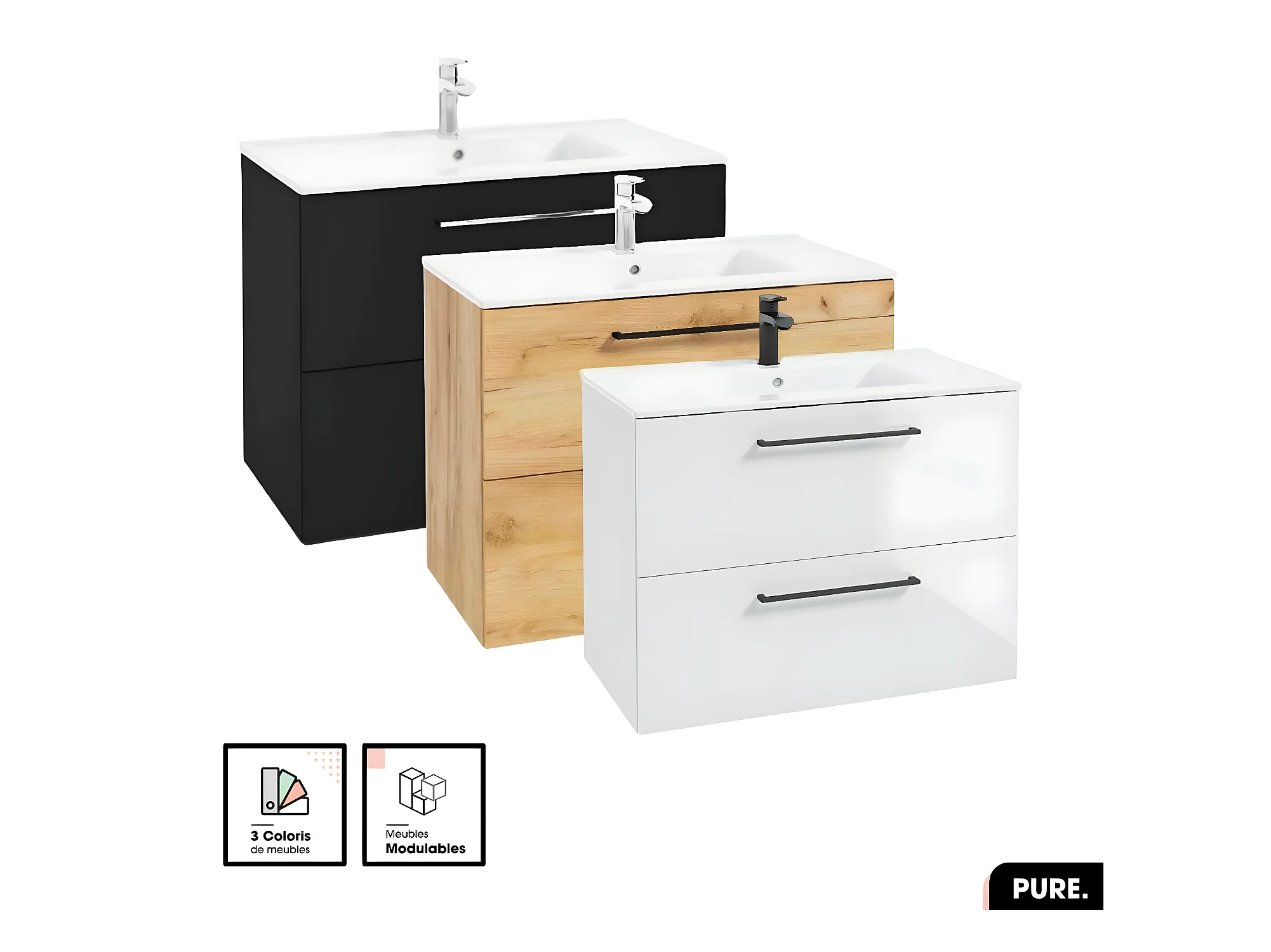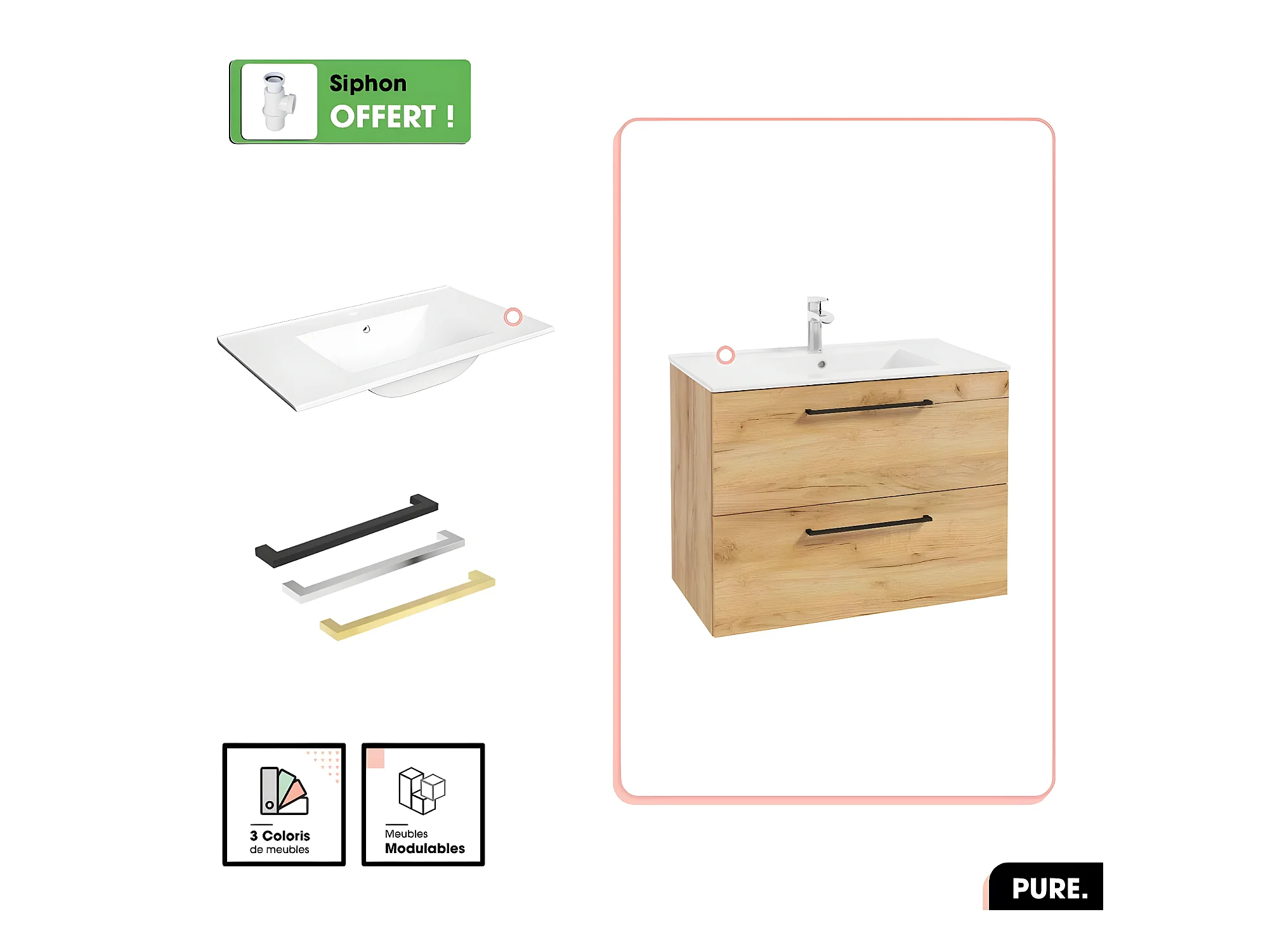 Ensemble meuble sous vasque avec vasque - Siphon OFFERT | PURE | Oak | 80 × 60 × 45