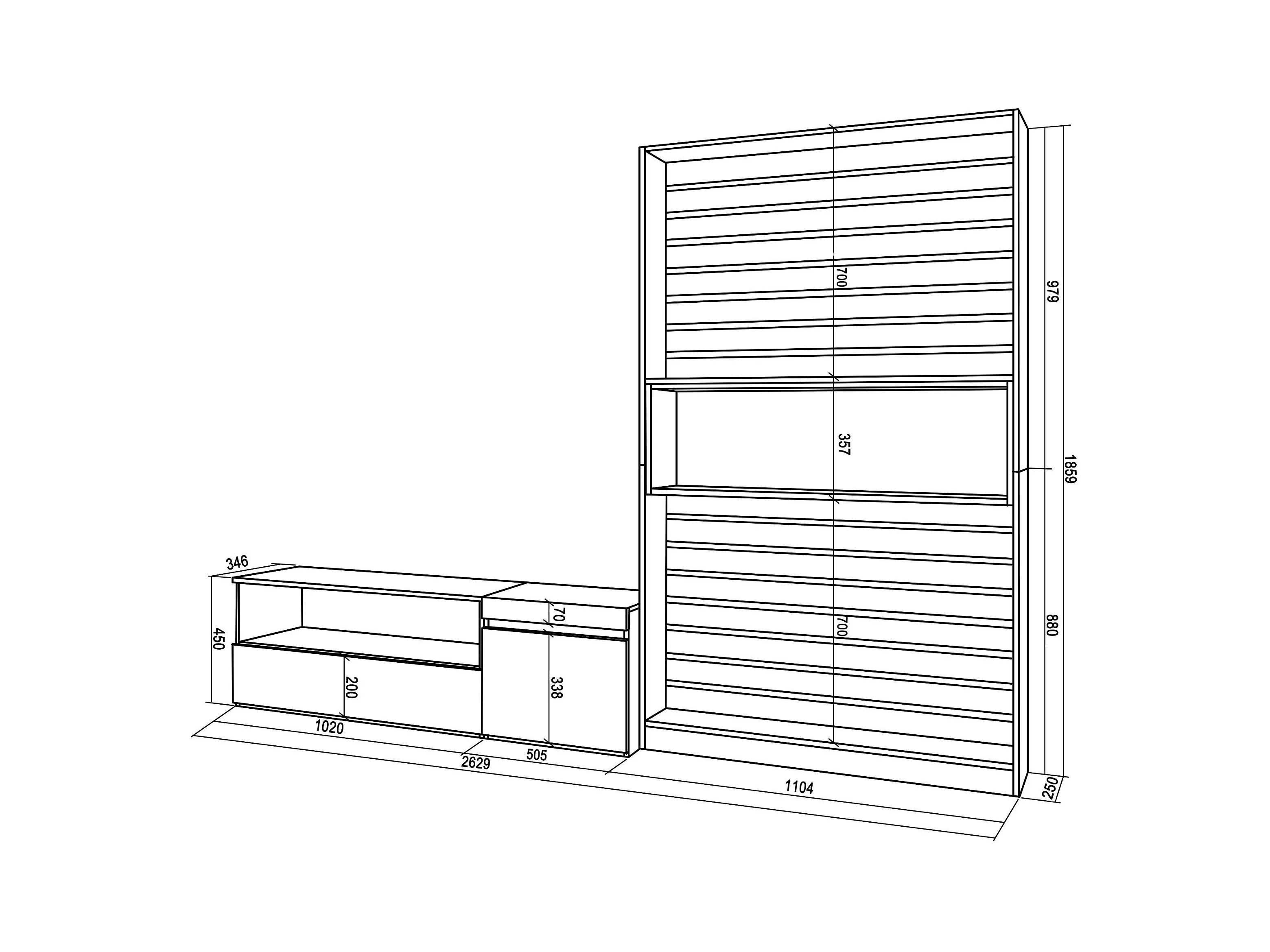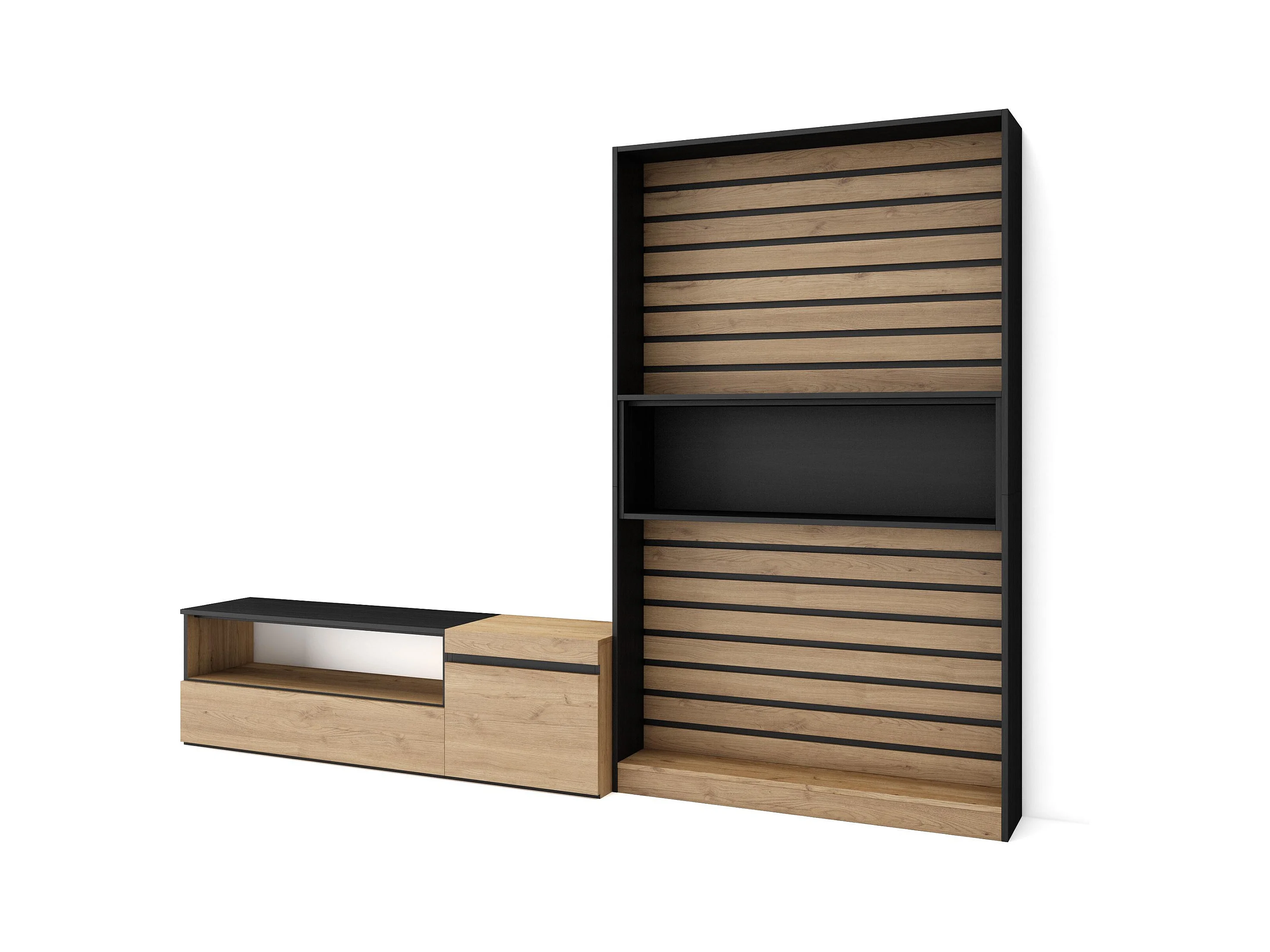 Ensemble Meuble TV, 260x35x186cm, Pour les TV jusqu'à 65", Salon Complet, Chêne et noir