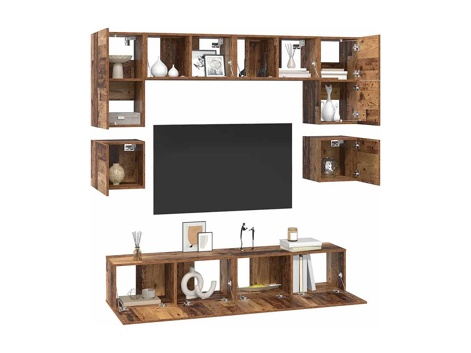 Ensemble meuble TV 8 pièces Bois ancien 80 x 30 x 30 cm