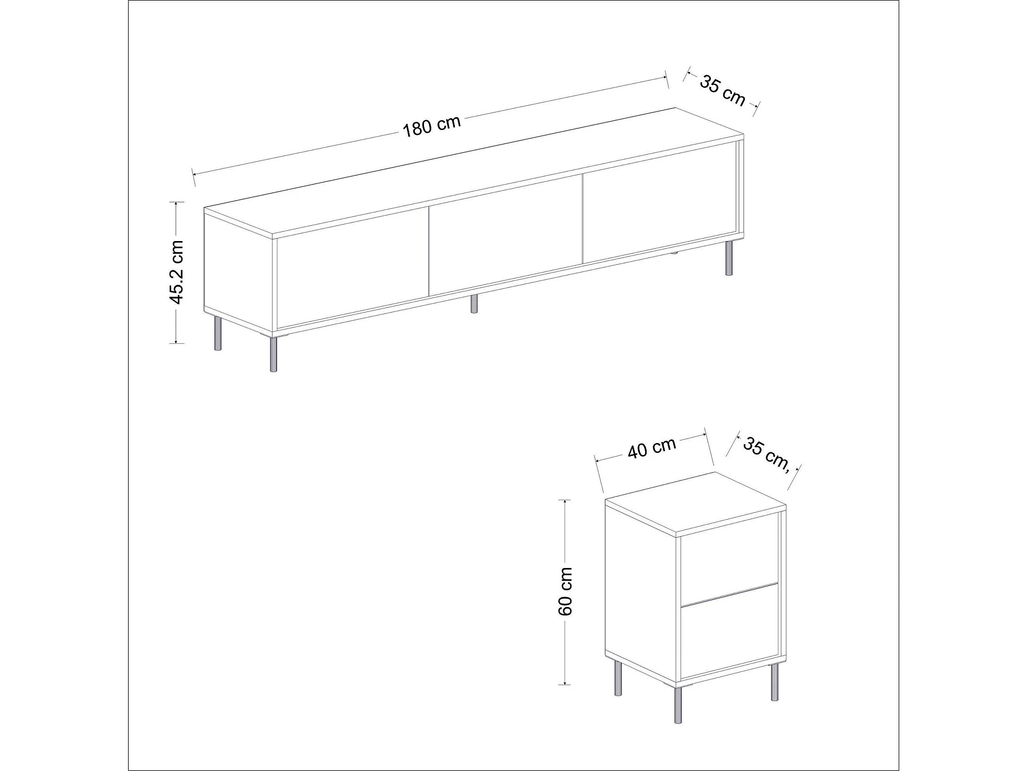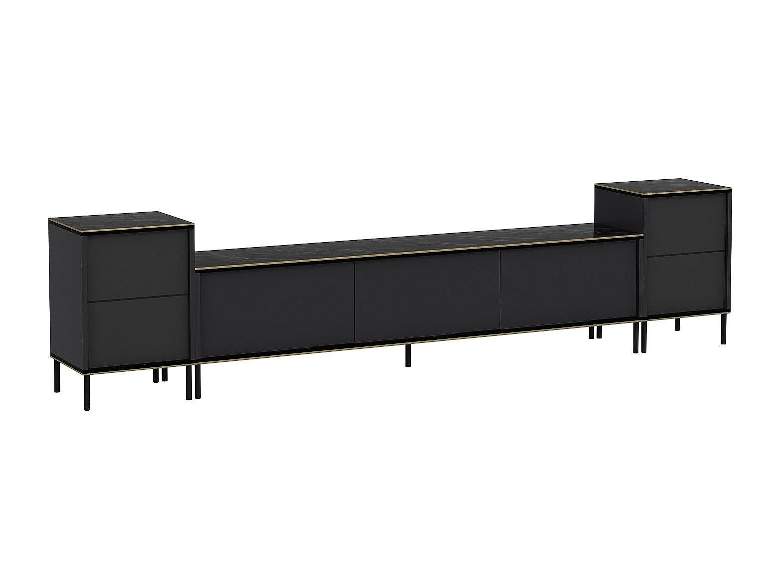 Ensemble meuble TV et 2 tables d'appoints Shonna Anthracite et Effet marbre Noir avec finition Or