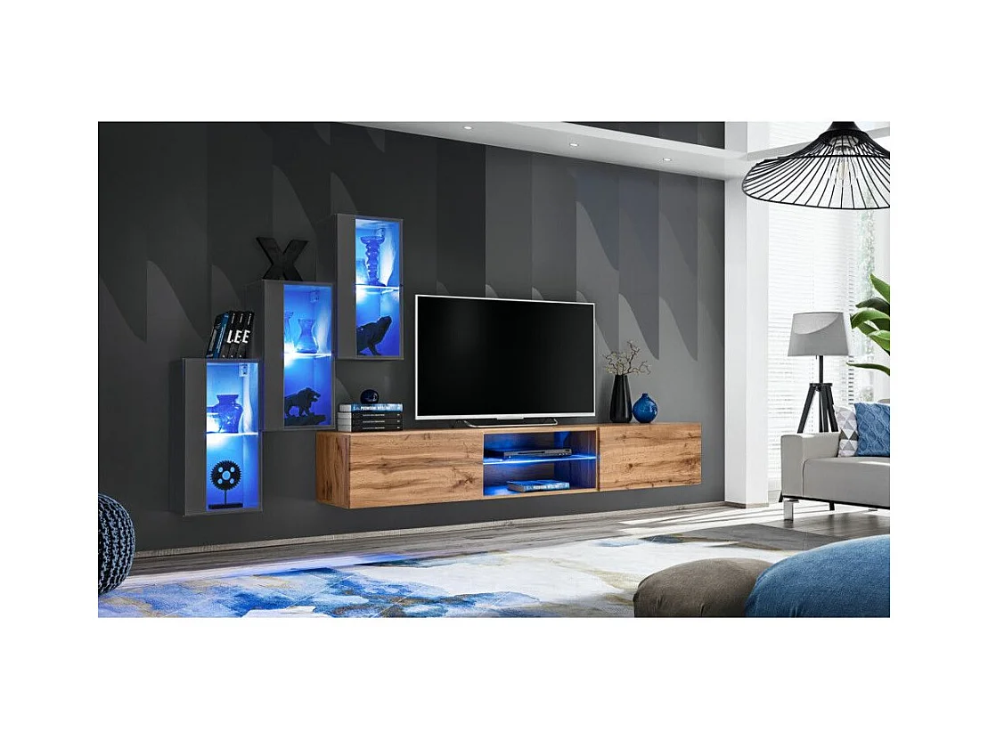 Ensemble Meuble TV "Switch XXII" 210cm Gris & Naturel
