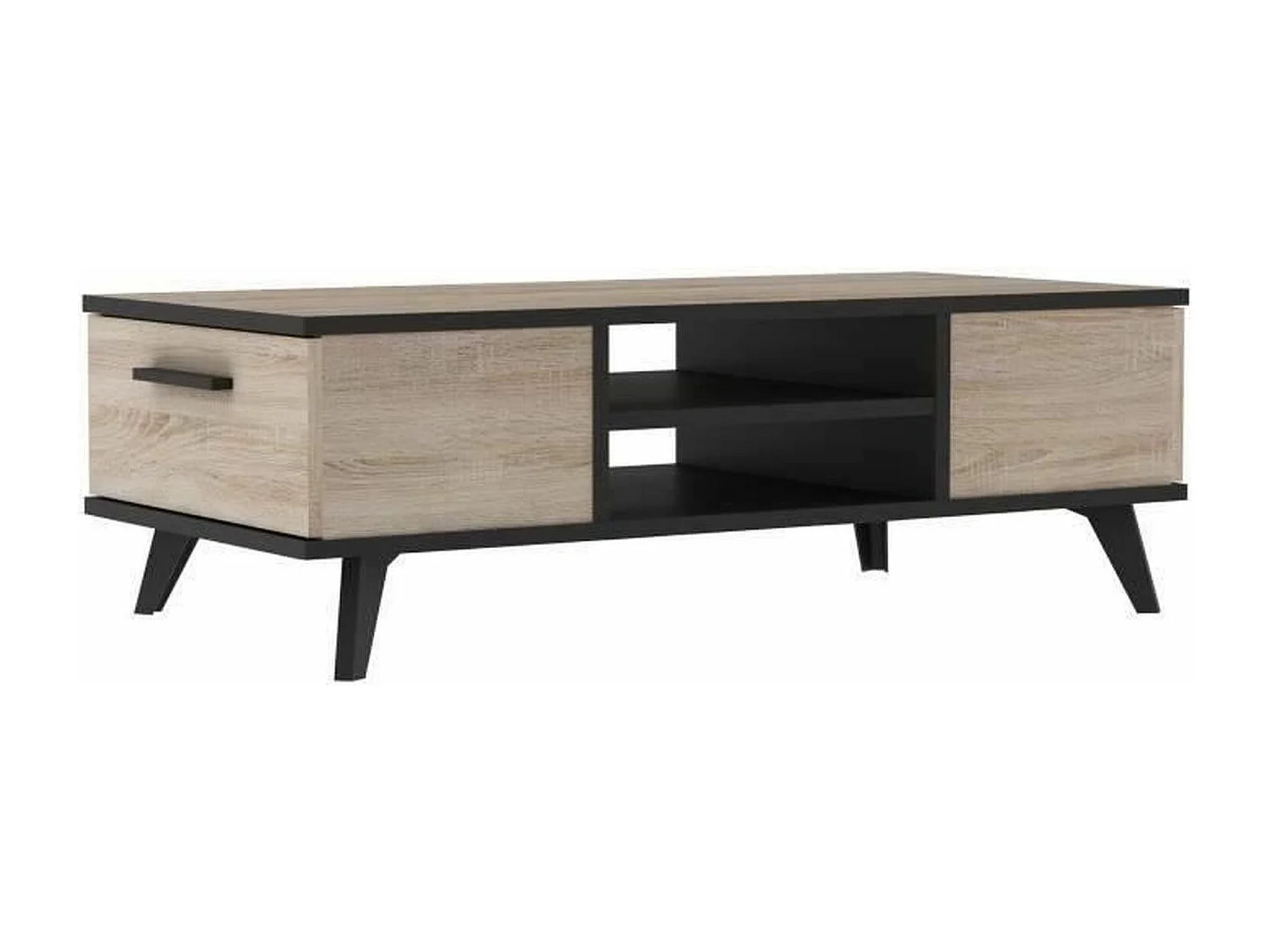 Ensemble scandinave meuble TV + table basse + buffet mélaminé - chêne brossé et noir