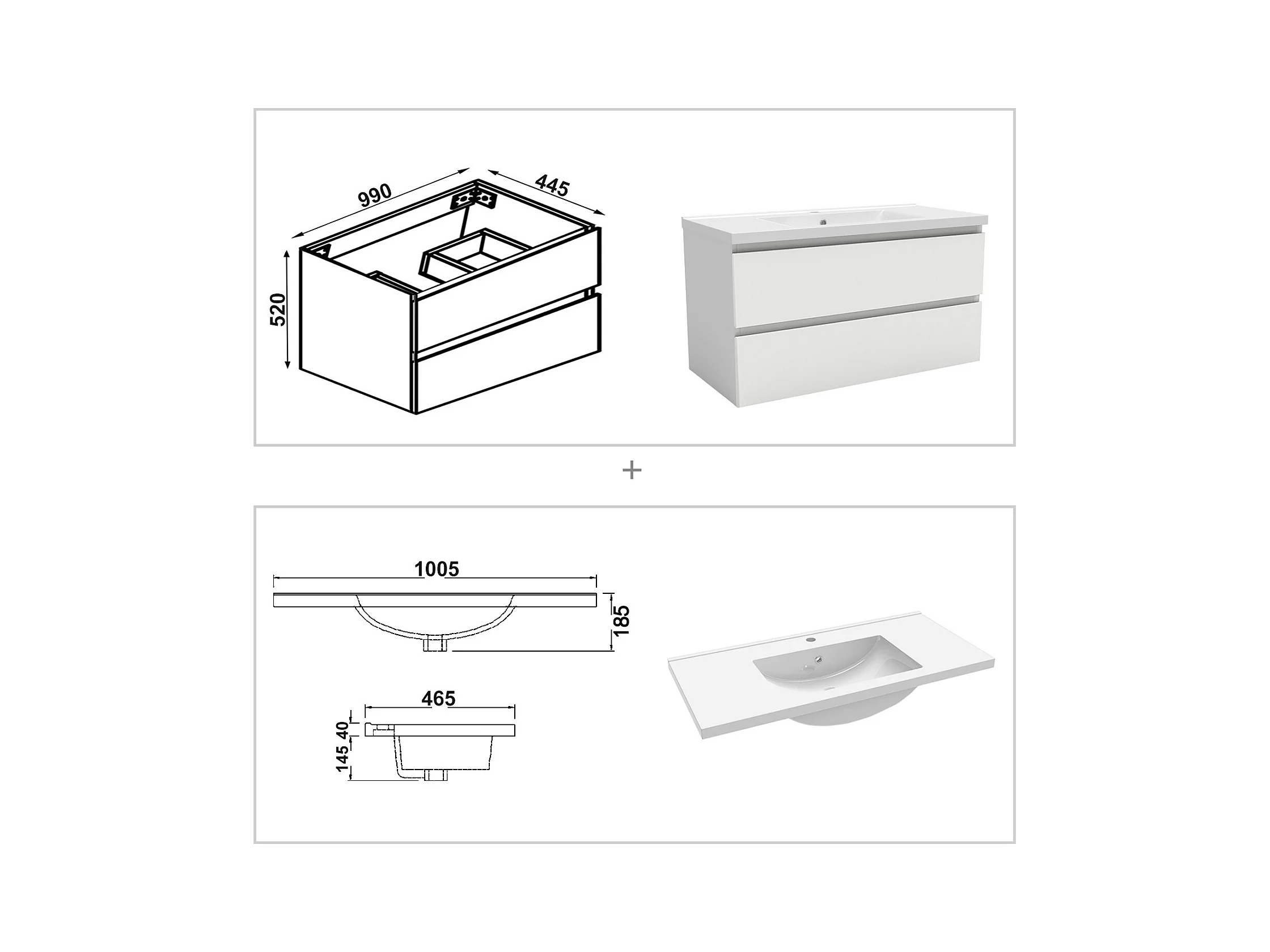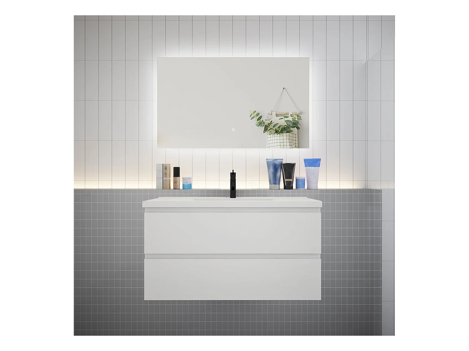 Ensemble meuble vasque L.100cm 2 tiroirs + lavabo + LED miroir 100cm,blanc