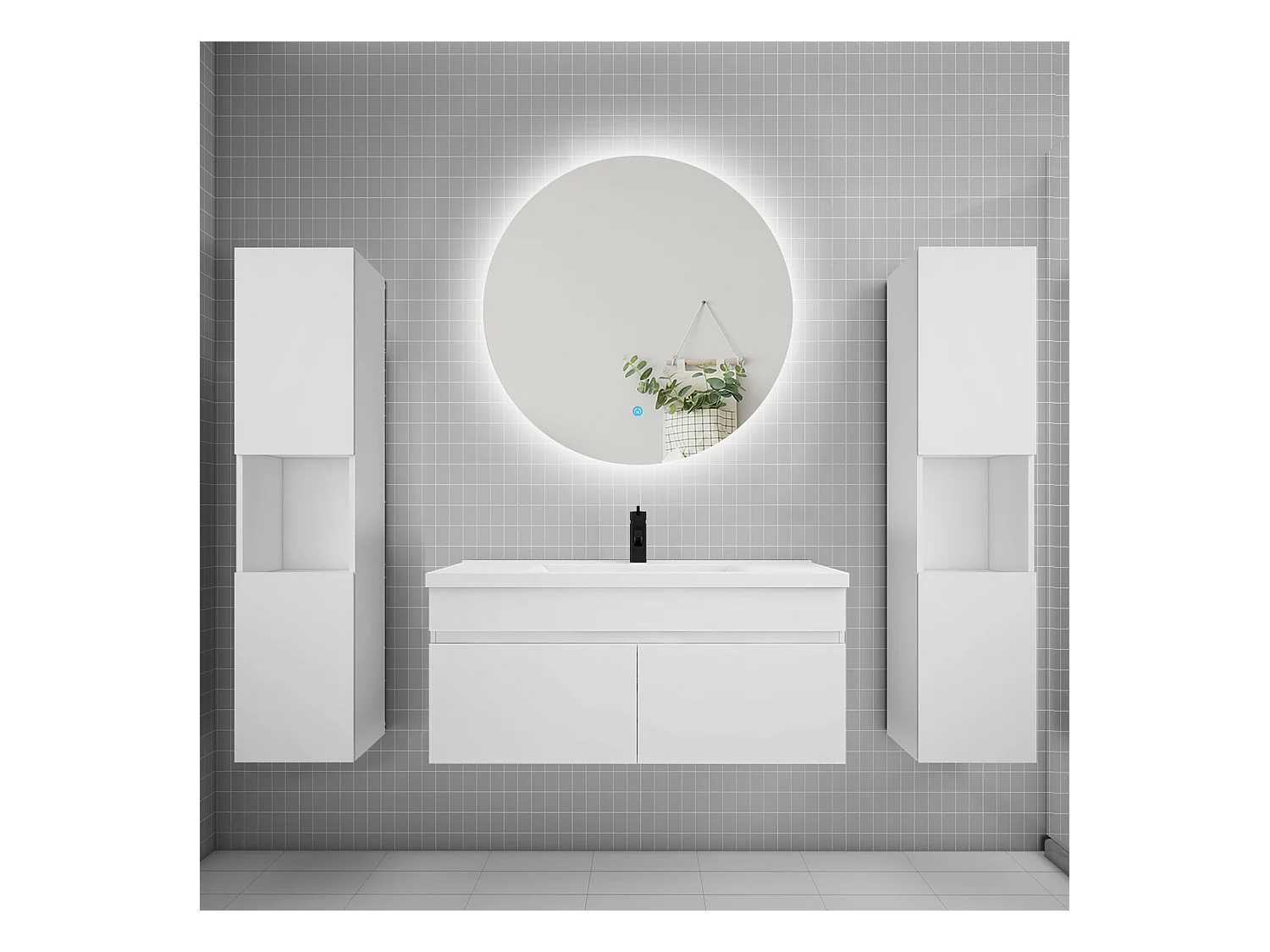 Ensemble meuble vasque L.100cm lavabo + colonne + LED miroir rond 100cm,blanc