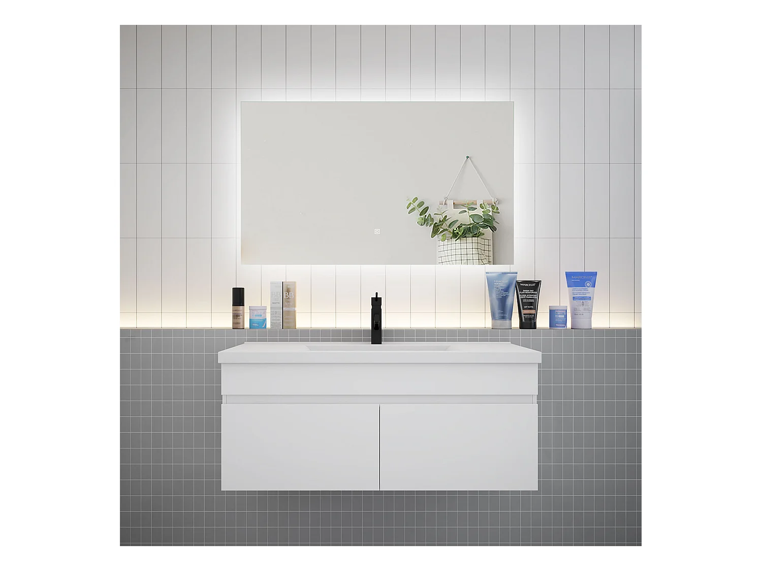 Ensemble meuble vasque L.100cm lavabo + LED miroir 100cm,blanc
