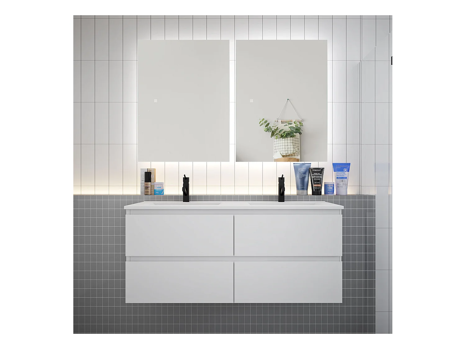 Ensemble meuble vasque L.120cm 2 tiroirs + lavabo + LED miroir 60cm,blanc