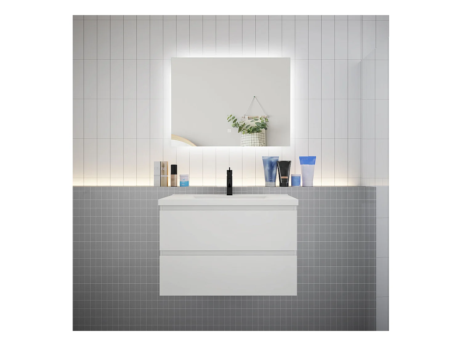 Ensemble meuble vasque L.80cm 2 tiroirs + lavabo + LED miroir 80cm,blanc