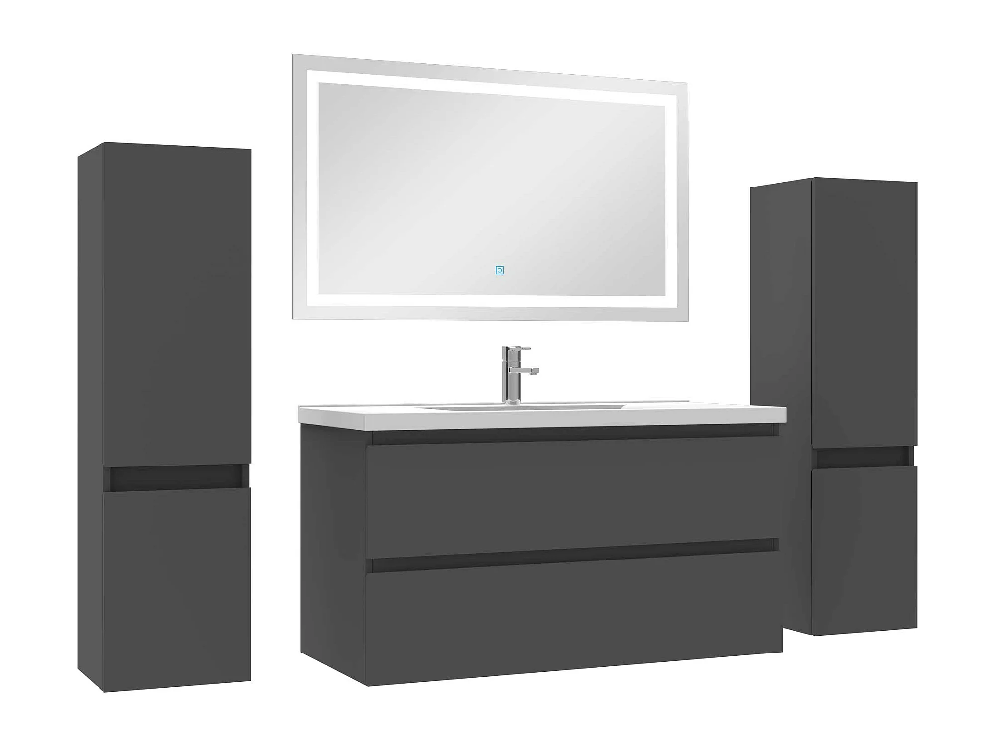 Ensemble meubles Salle de Bain 100cm simple vasque + colonne + miroir lumineux Anthracite