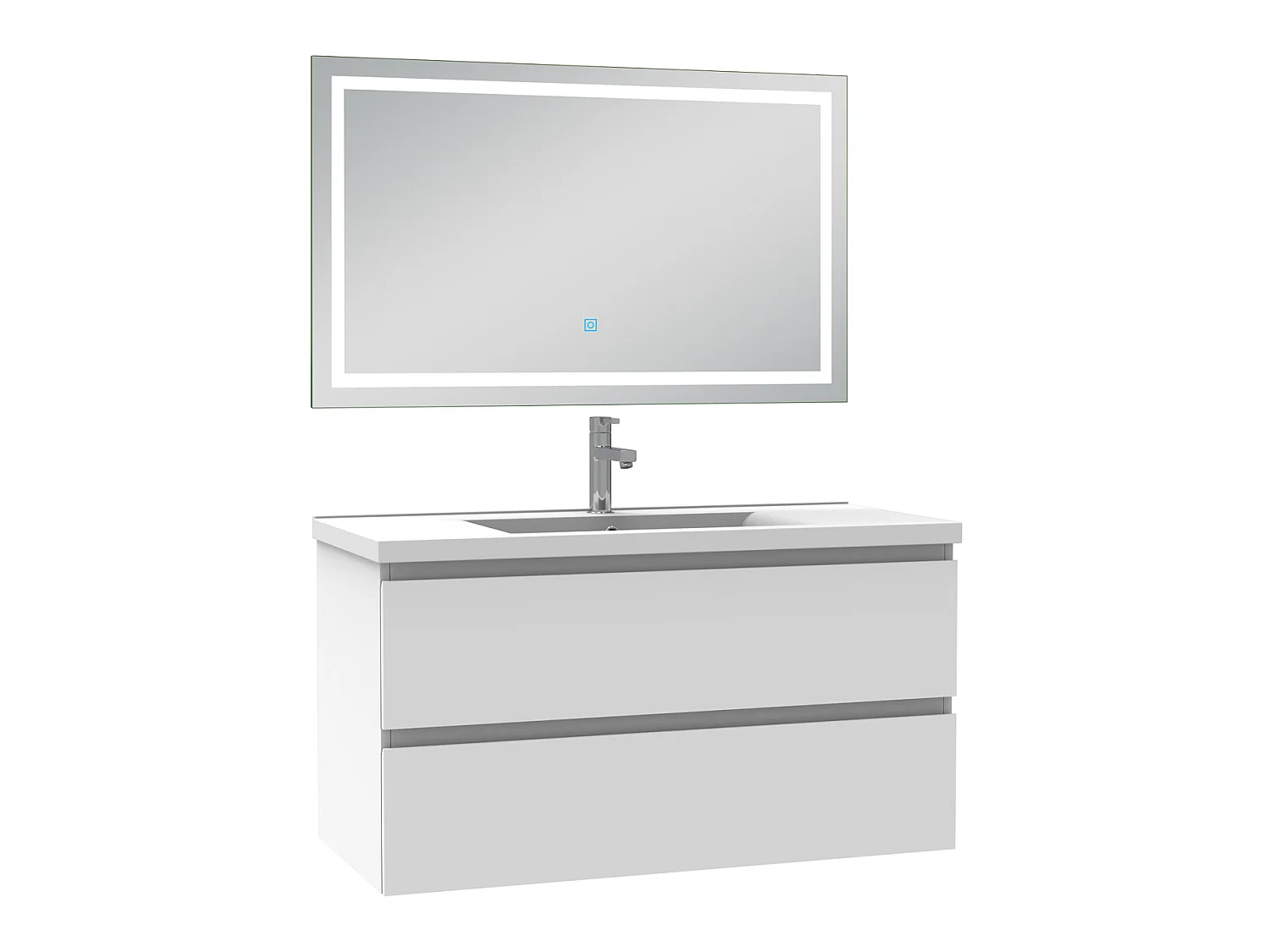 Ensemble meubles salle de bain 100cm simple vasque + miroir Blanc, Aica