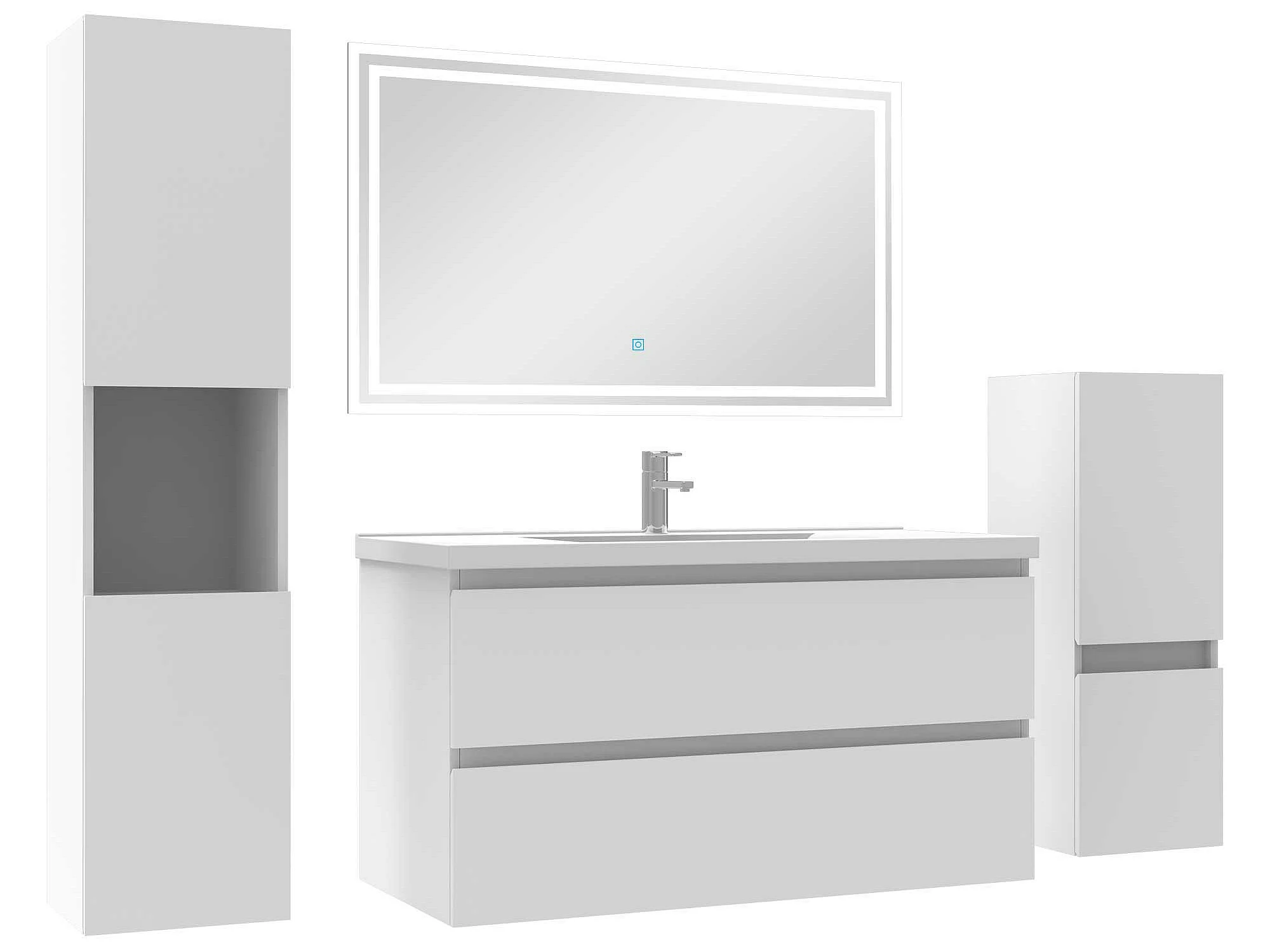 Ensemble meubles Salle de Bain 100cm vasque et colonnex2 et miroir Blanc
