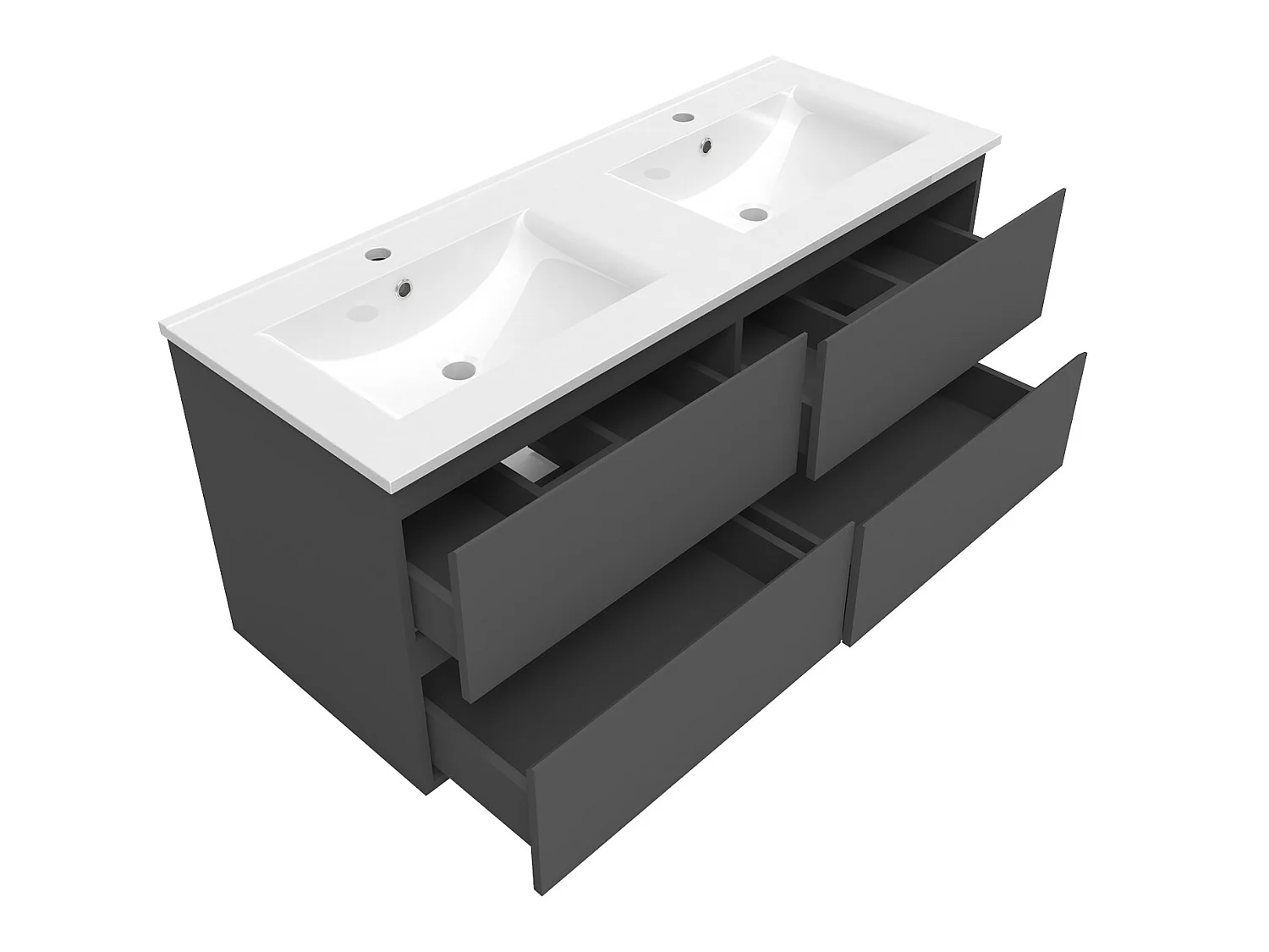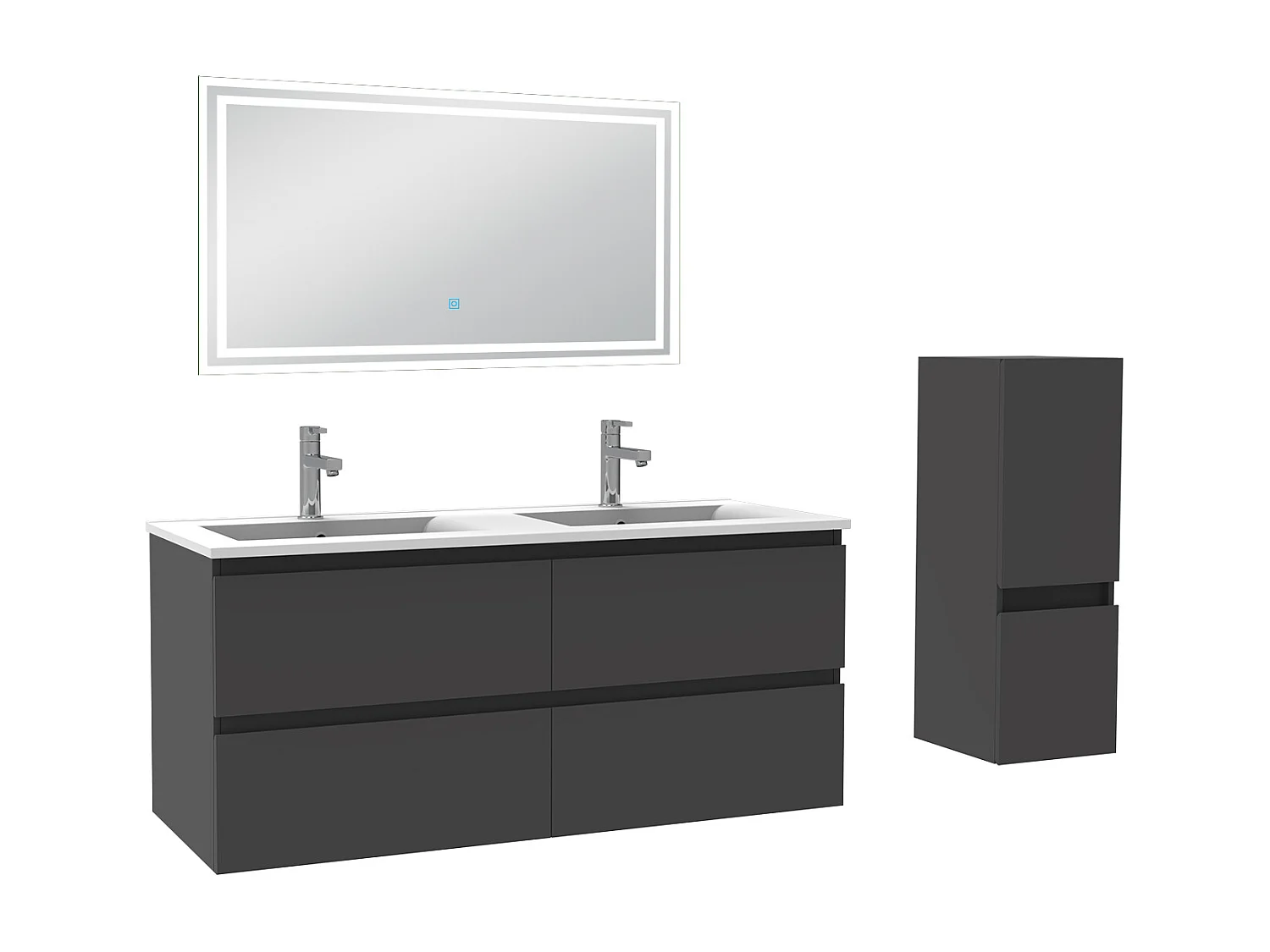 Ensemble meubles Salle de Bain 120cm 4pcs vasque + colonne + miroir LED Anthracite - Aica