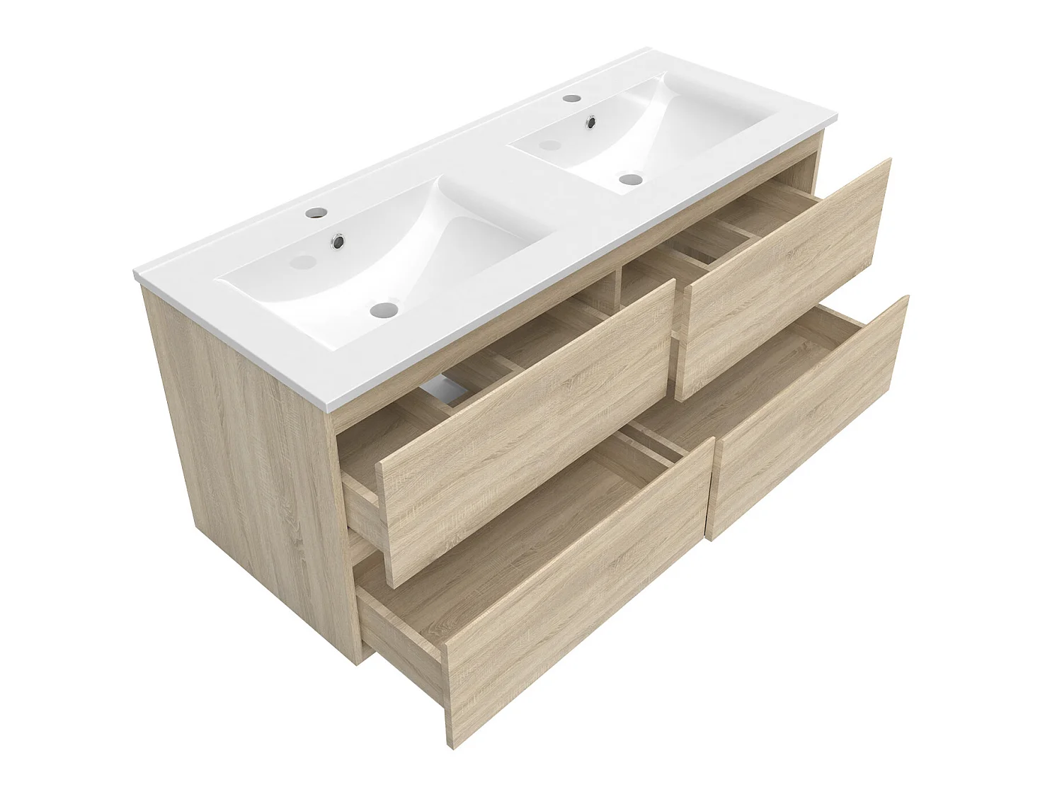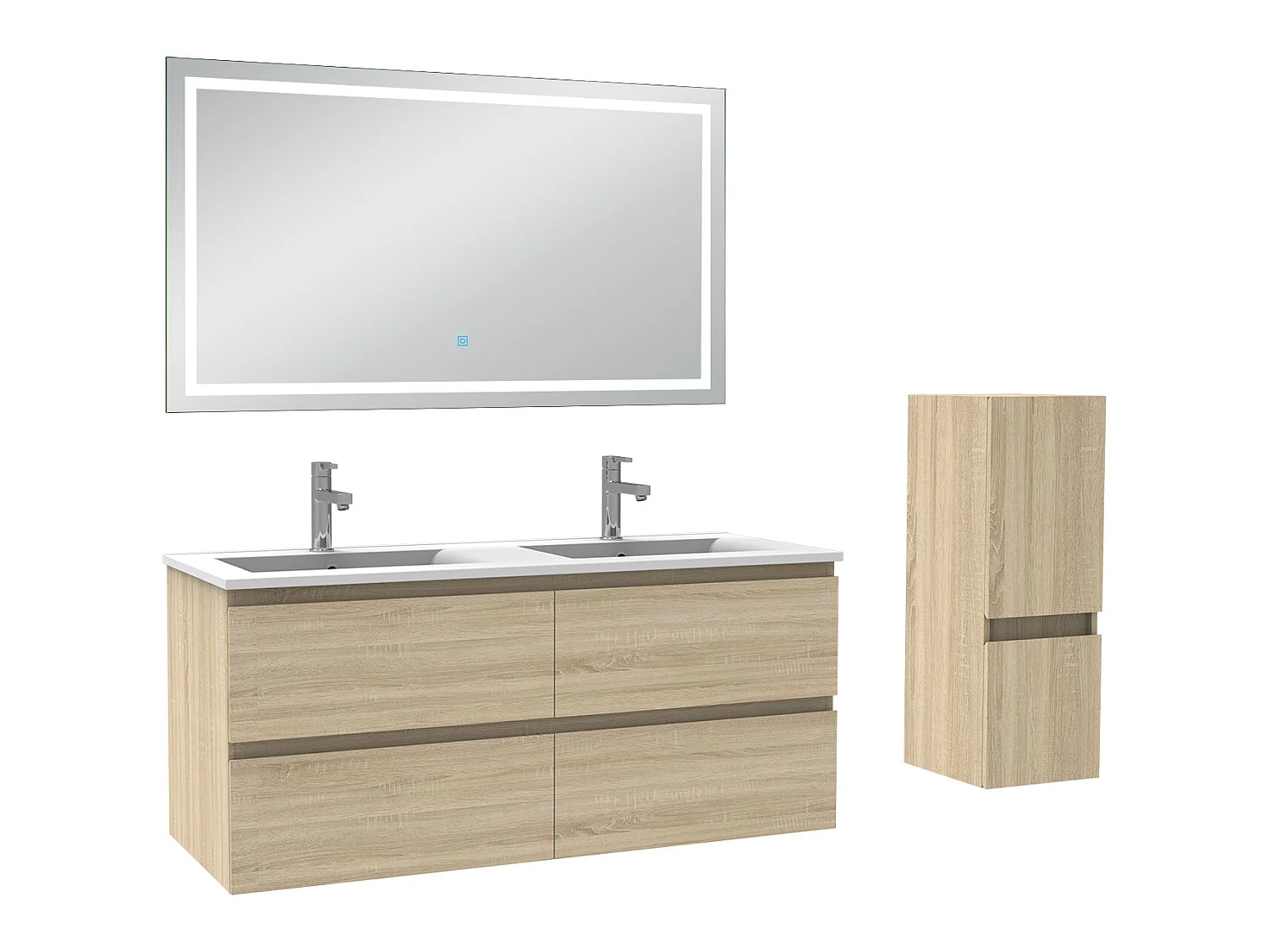 Ensemble meubles Salle de Bain 120cm 4pcs vasque et colonne et miroir LED Chêne Wotan - Aica