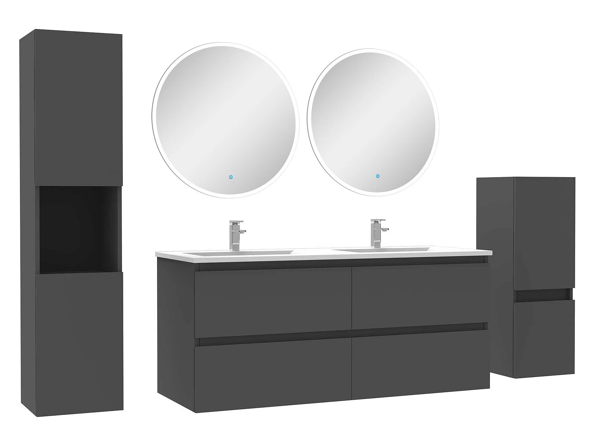 Ensemble meubles Salle de Bain 120cm double vasque + colonne + miroir rond mural Anthracite