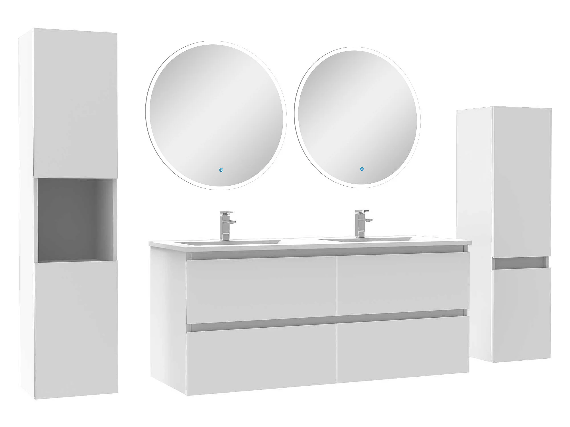 Ensemble meubles Salle de Bain 120cm vasque + colonne + miroir rond mural Blanc