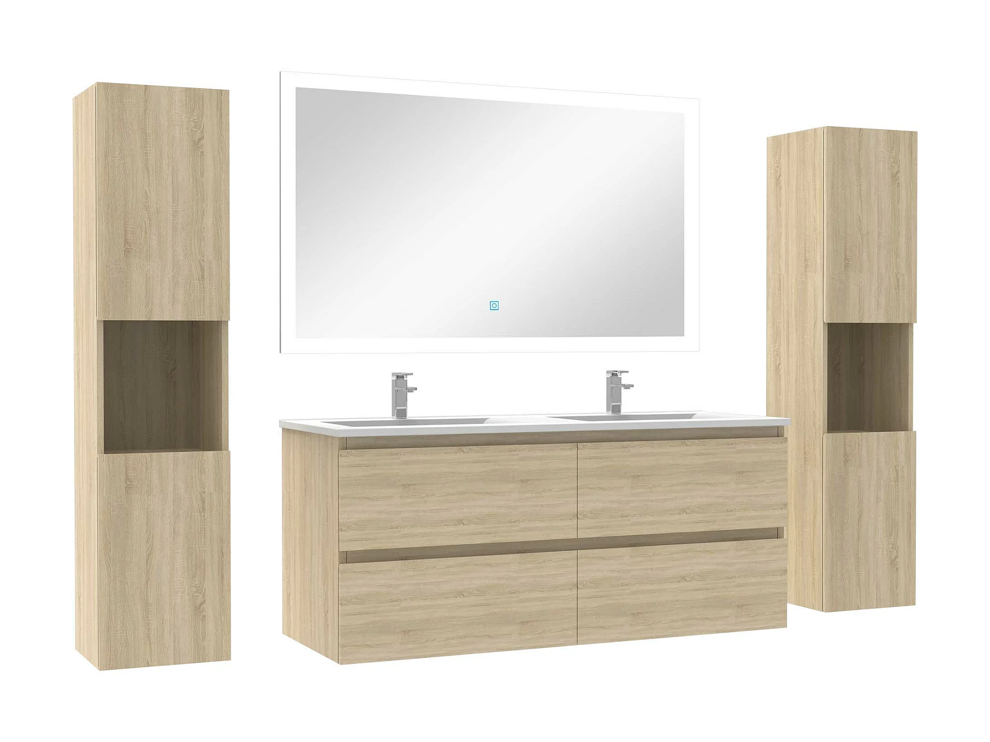 Ensemble meubles Salle de Bain 120cm vasque et colonnex2 et LED miroir Chêne Wotan