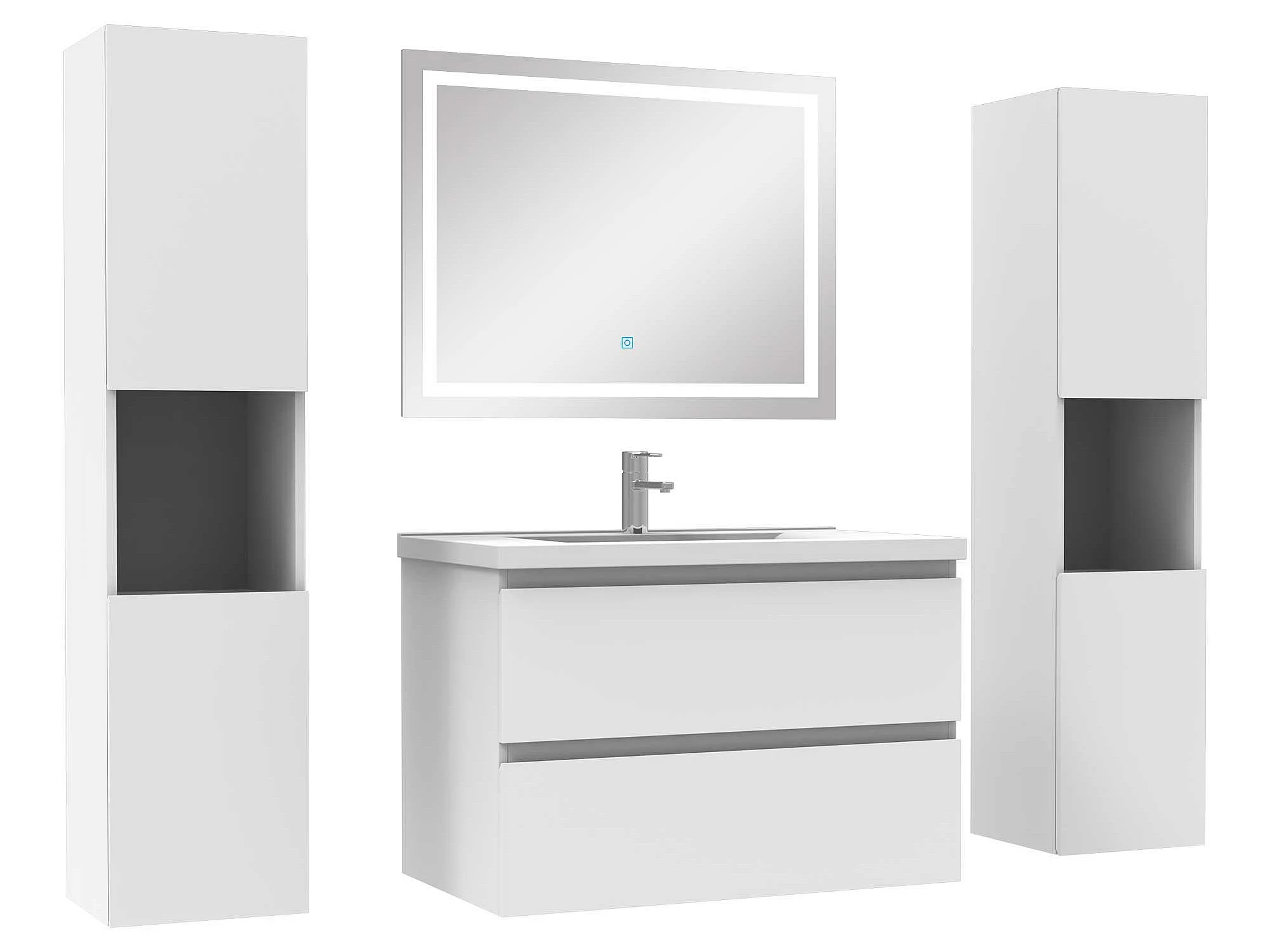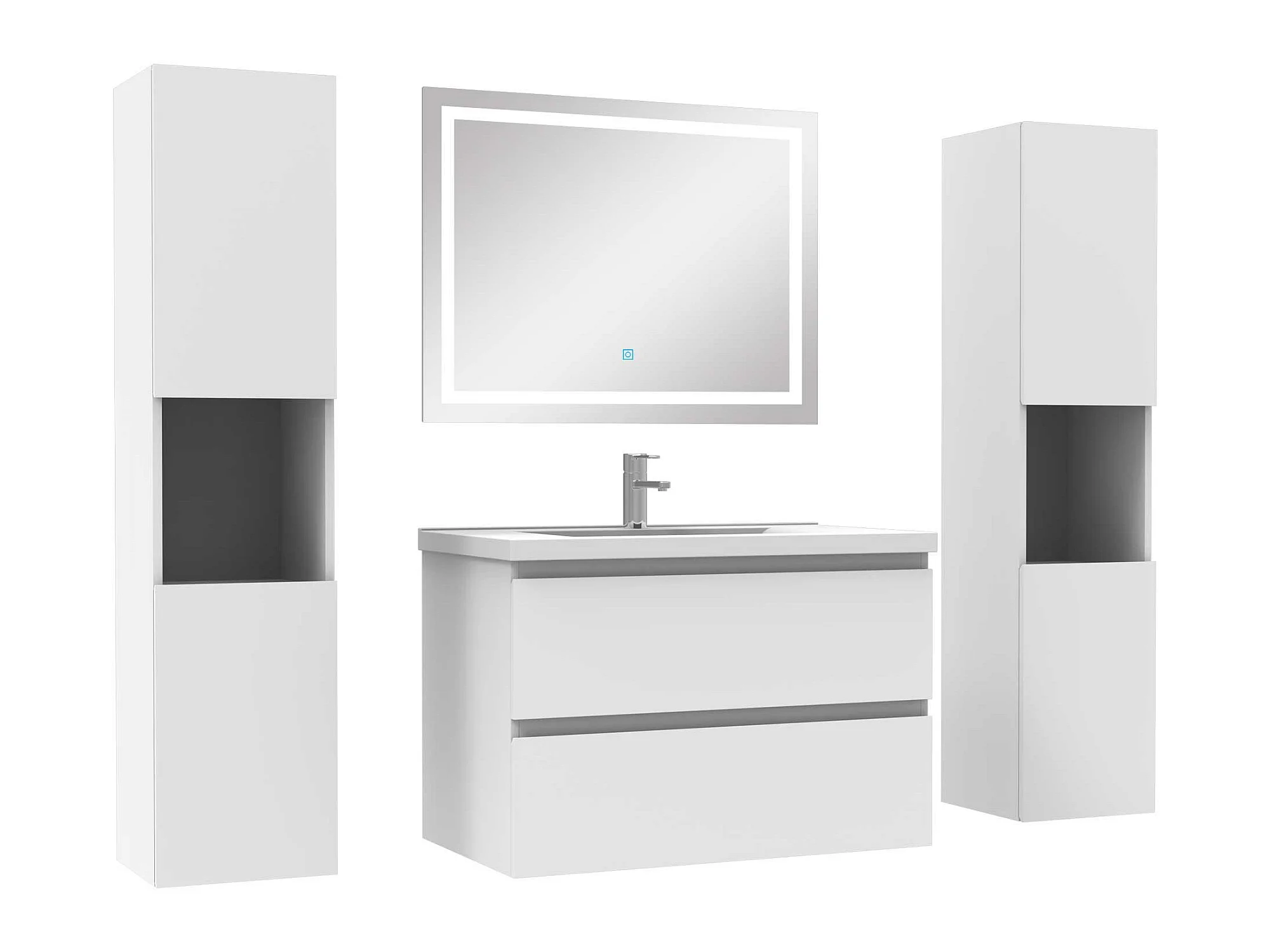 Ensemble meubles Salle de Bain 80cm vasque + colonne + miroir lumineux Blanc