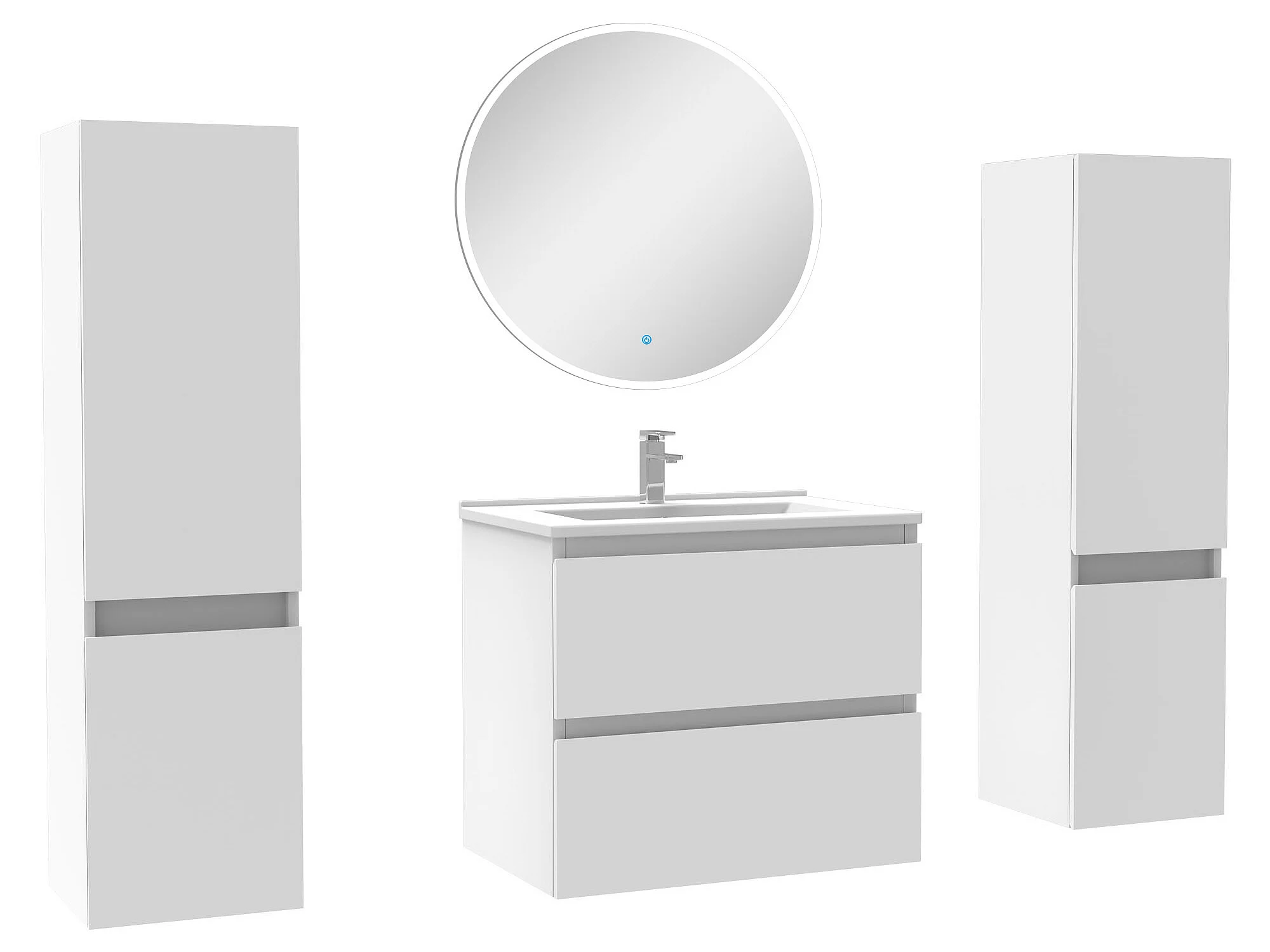 Ensemble meubles Salle de Bain avec colonne + miroir rond mural 60cm meuble blanc