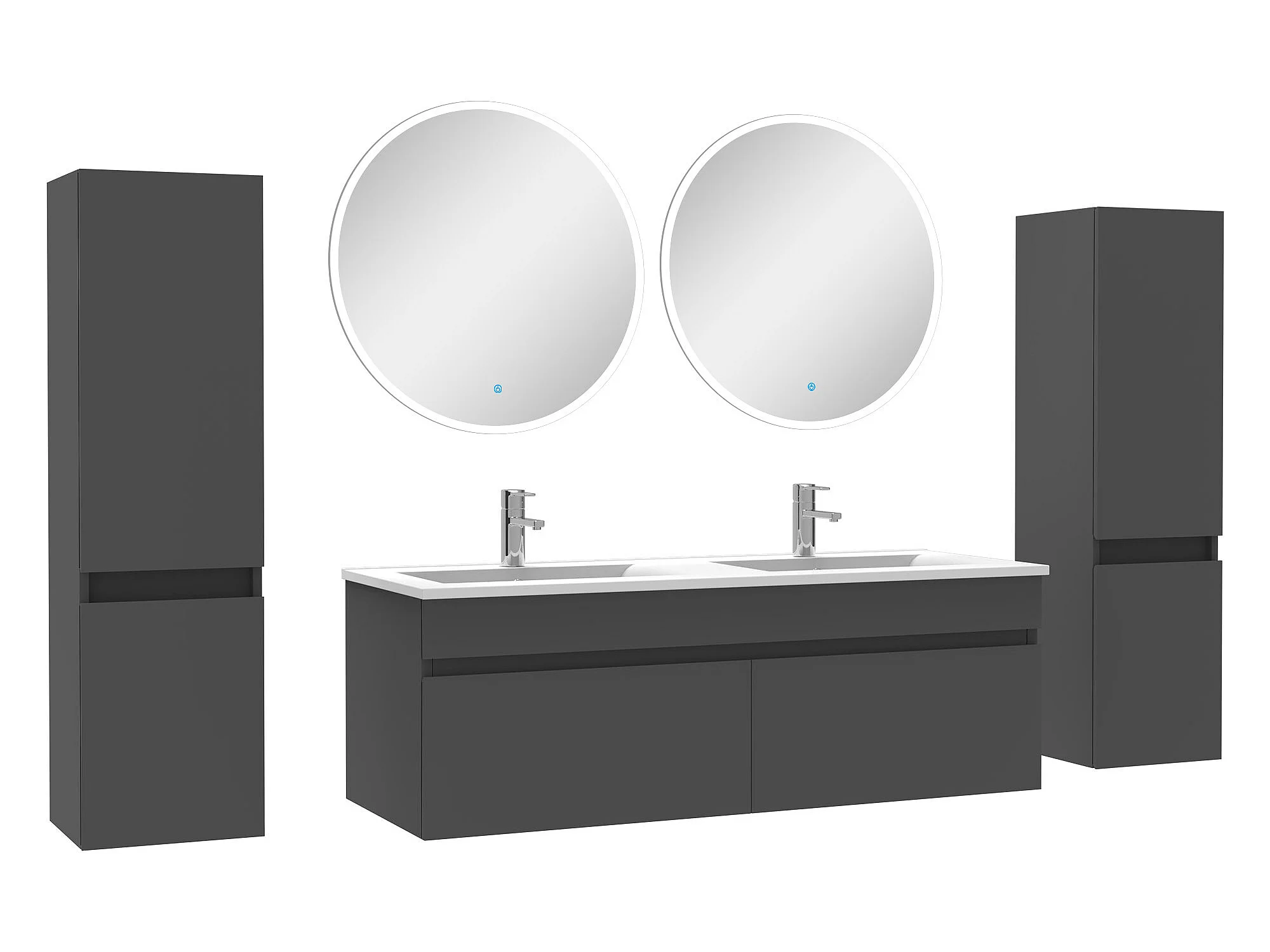 Ensemble meubles Salle de Bain double vasque 120cm, colonnex2 + miroir rond Anthracite