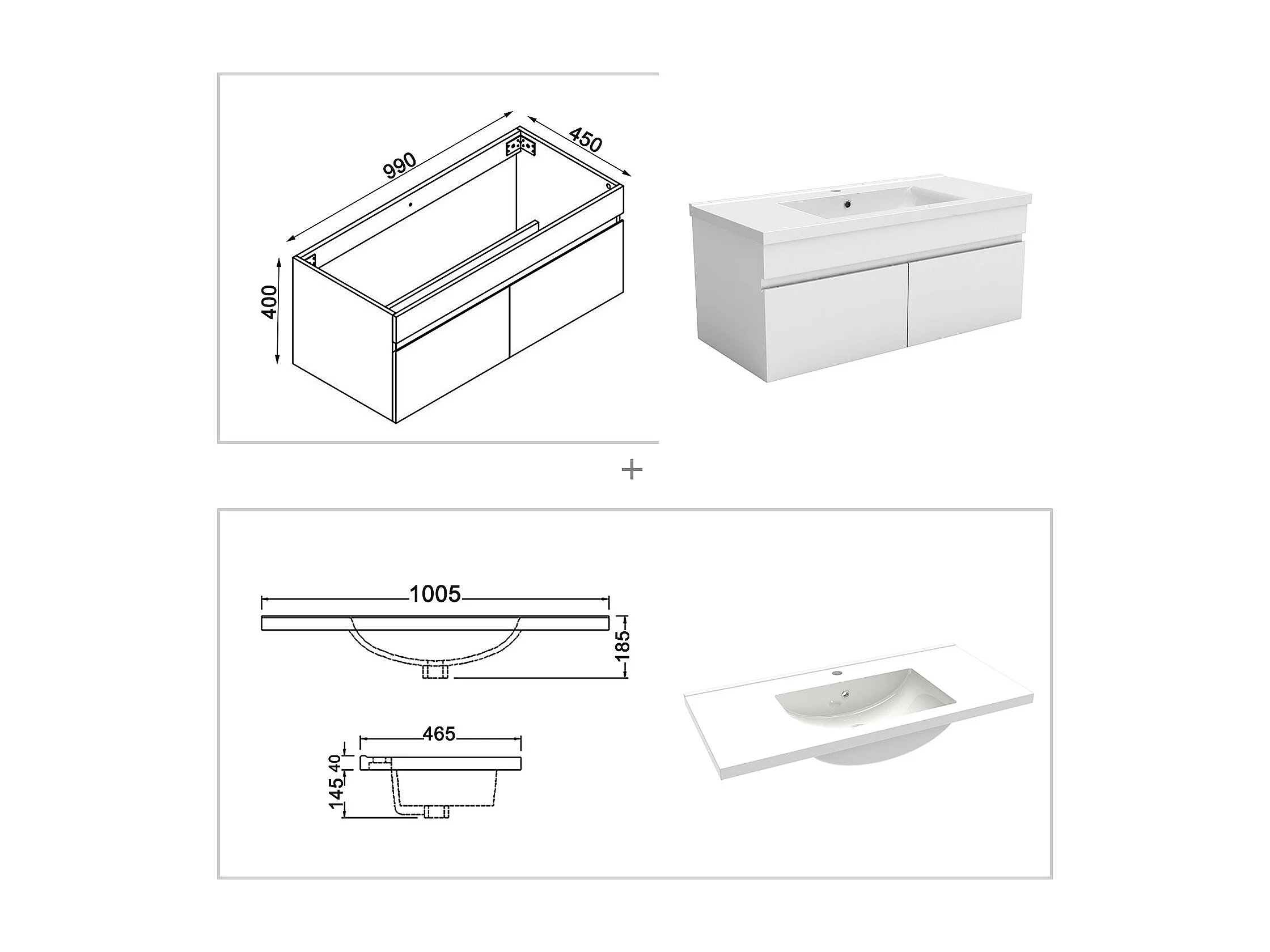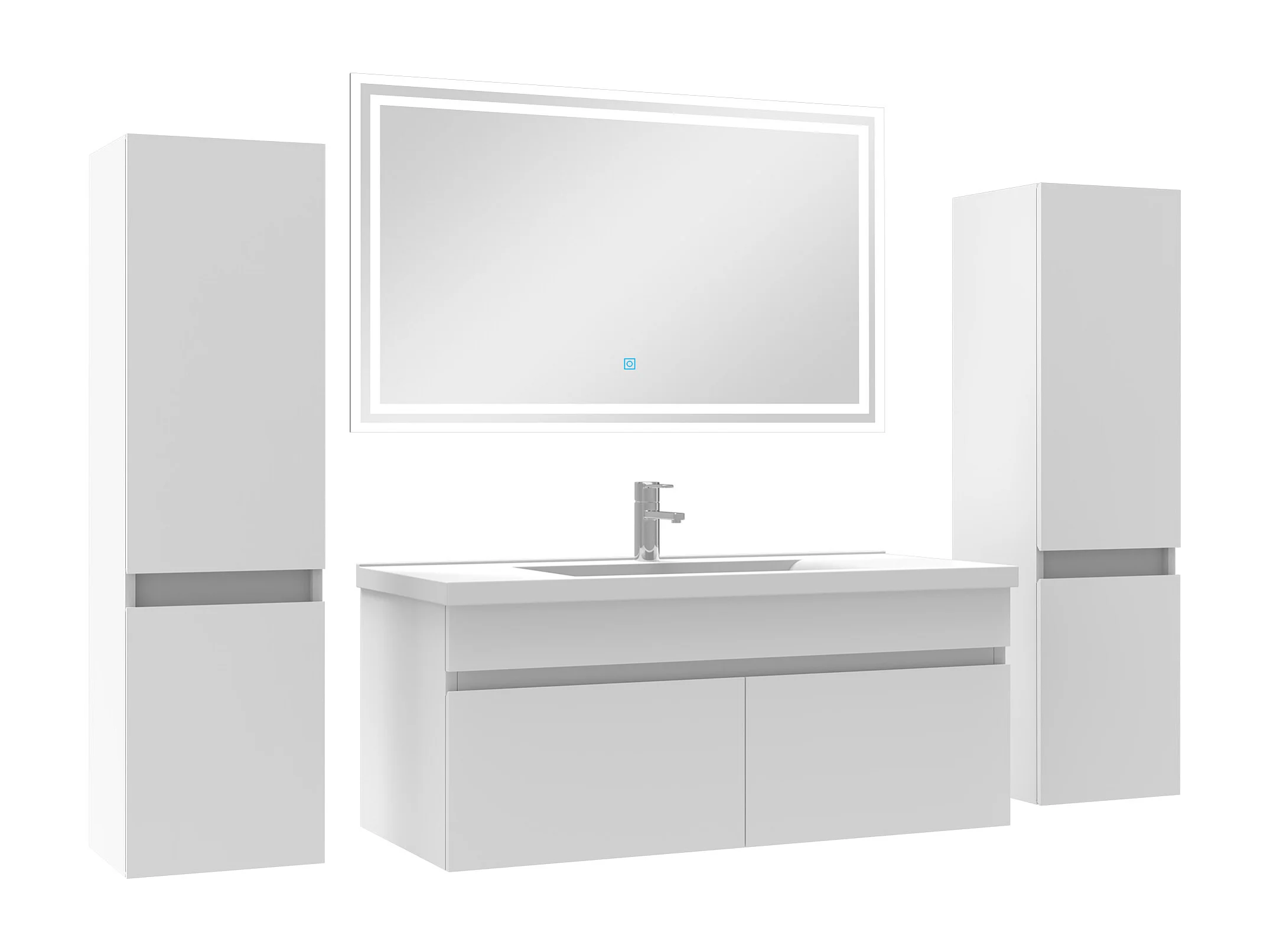 Ensemble meubles Salle de Bain simple vasque 100cm, colonnex2 + miroir Blanc