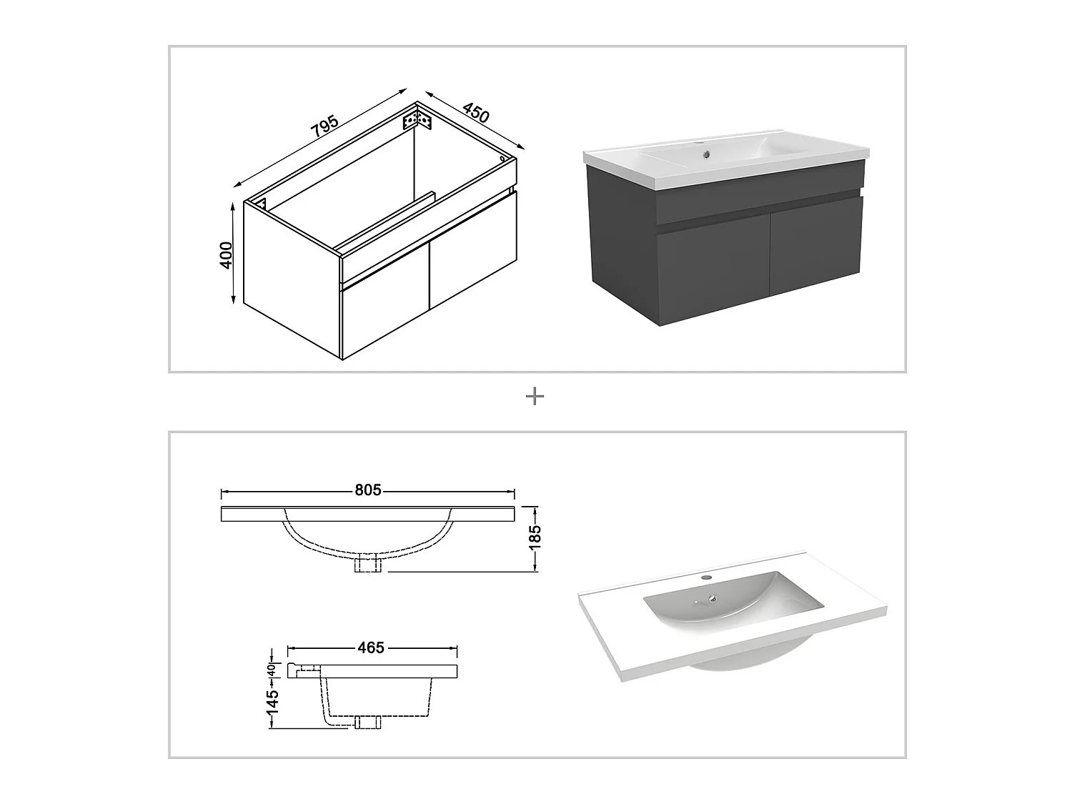 Ensemble meubles Salle de Bain simple vasque 80cm, colonnex2 et miroir rond Anthracite