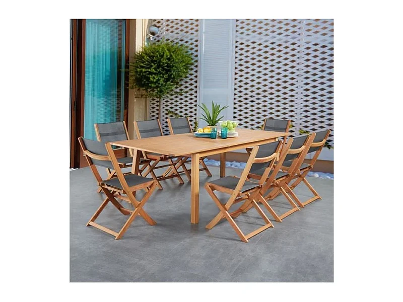 Ensemble repas de jardin 6 a 8 personnes - Table aluminium extensible + 6 chaises - Gris
