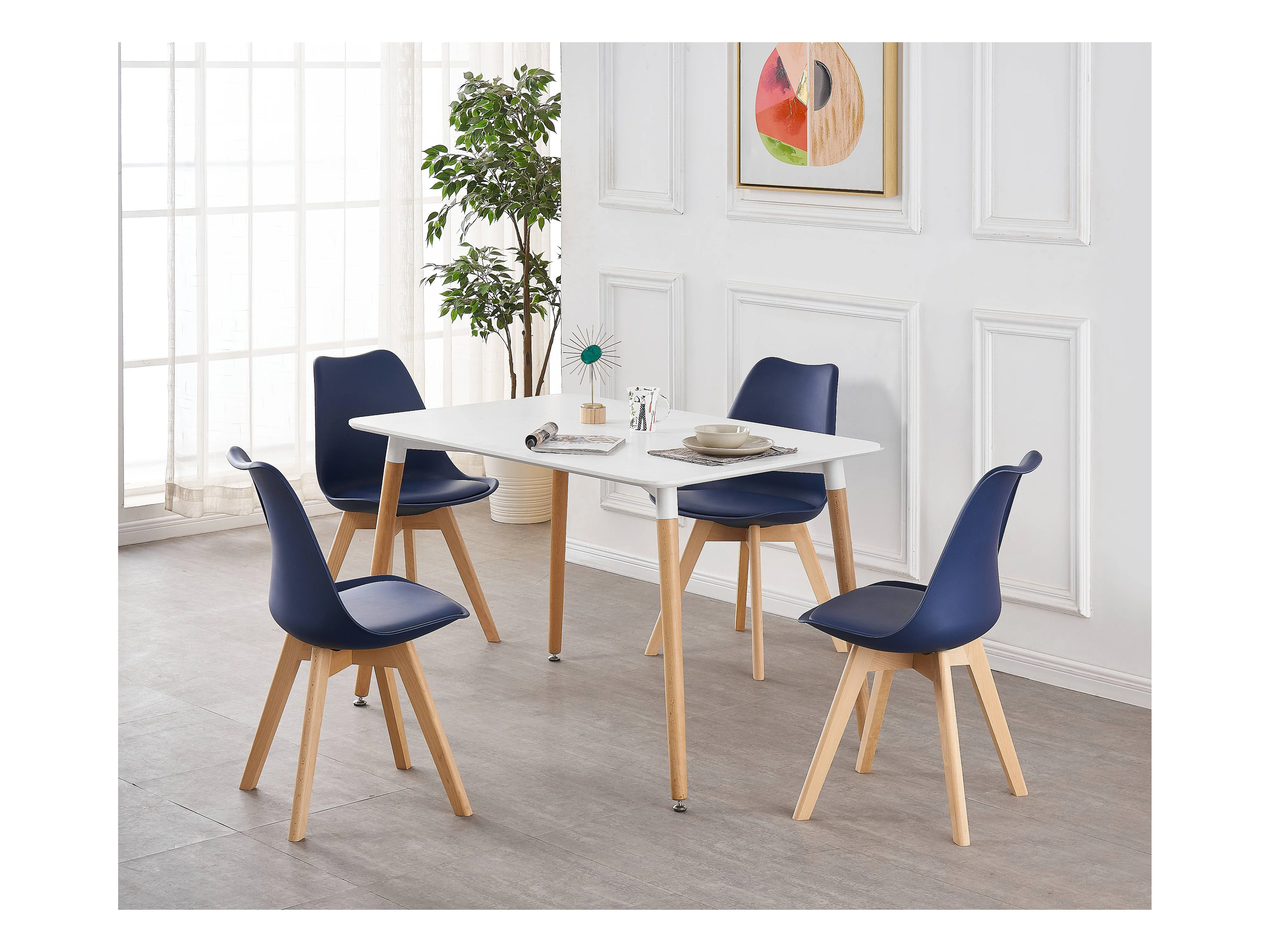 LORENZO HALO - Ensemble Salle à Manger Moderne - Table Blanche + 4 Chaises Bleues - Design Scandinave