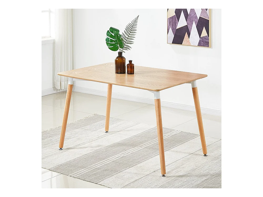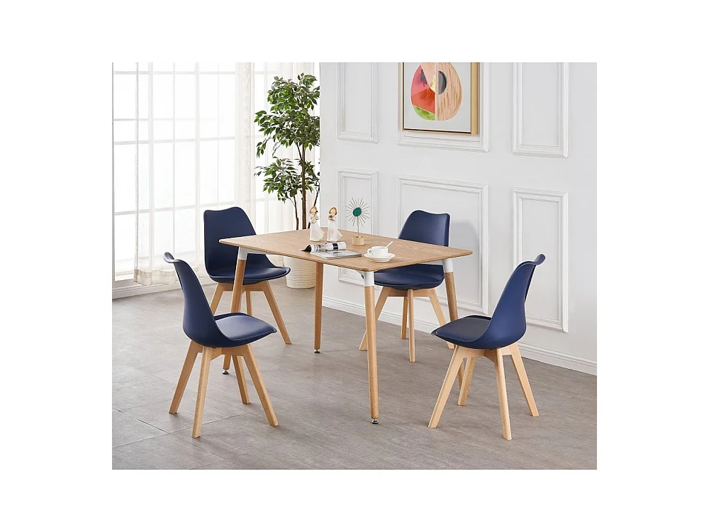 LORENZO HALO - Ensemble Salle à Manger Moderne - Table Effet Chêne + 4 Chaises Bleues - Design Scandinave