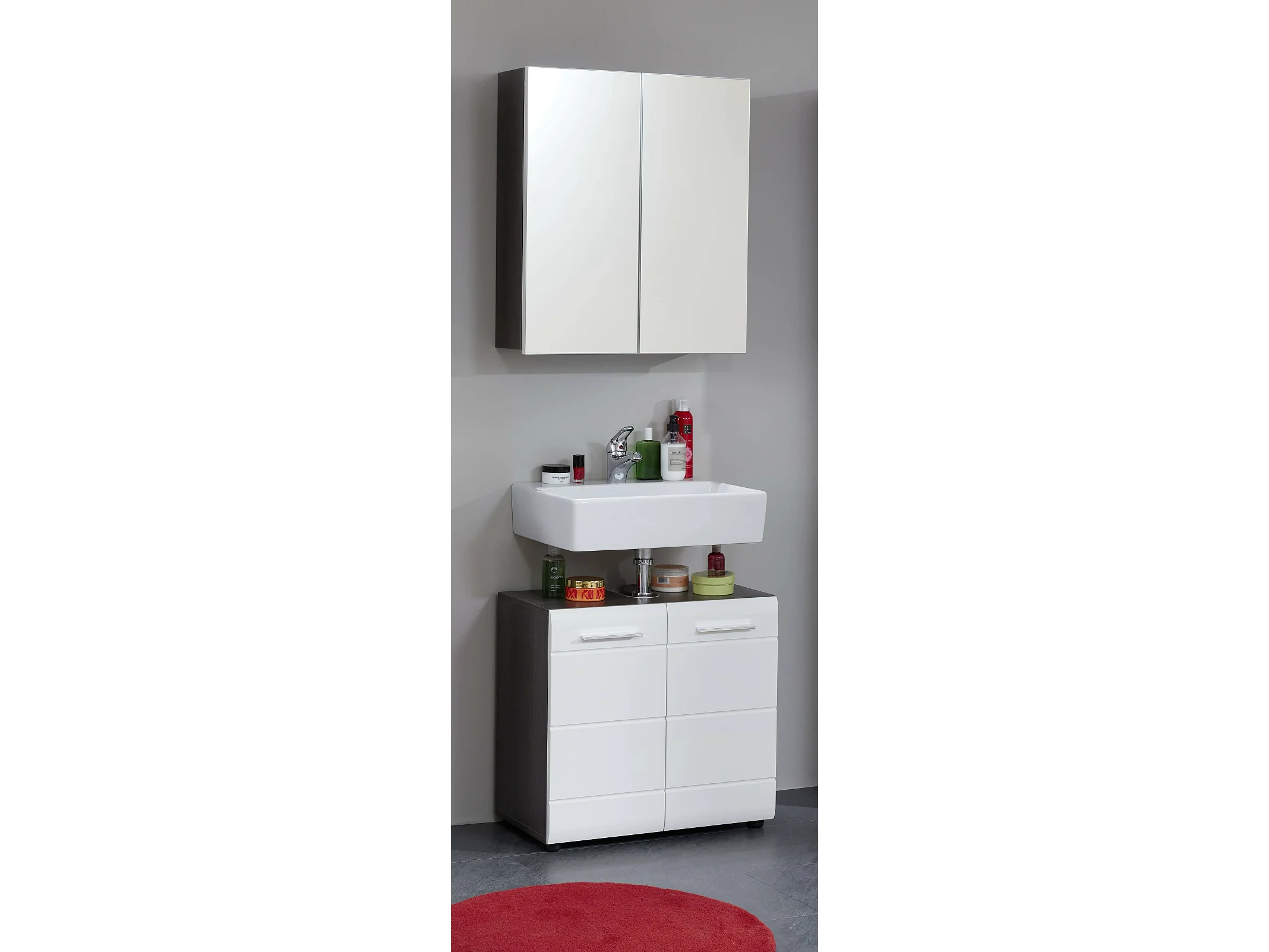 Ensemble salle de bain 2 pièces. Mélaminé gris et blanc brillant. L-H-P : 60-182-31
