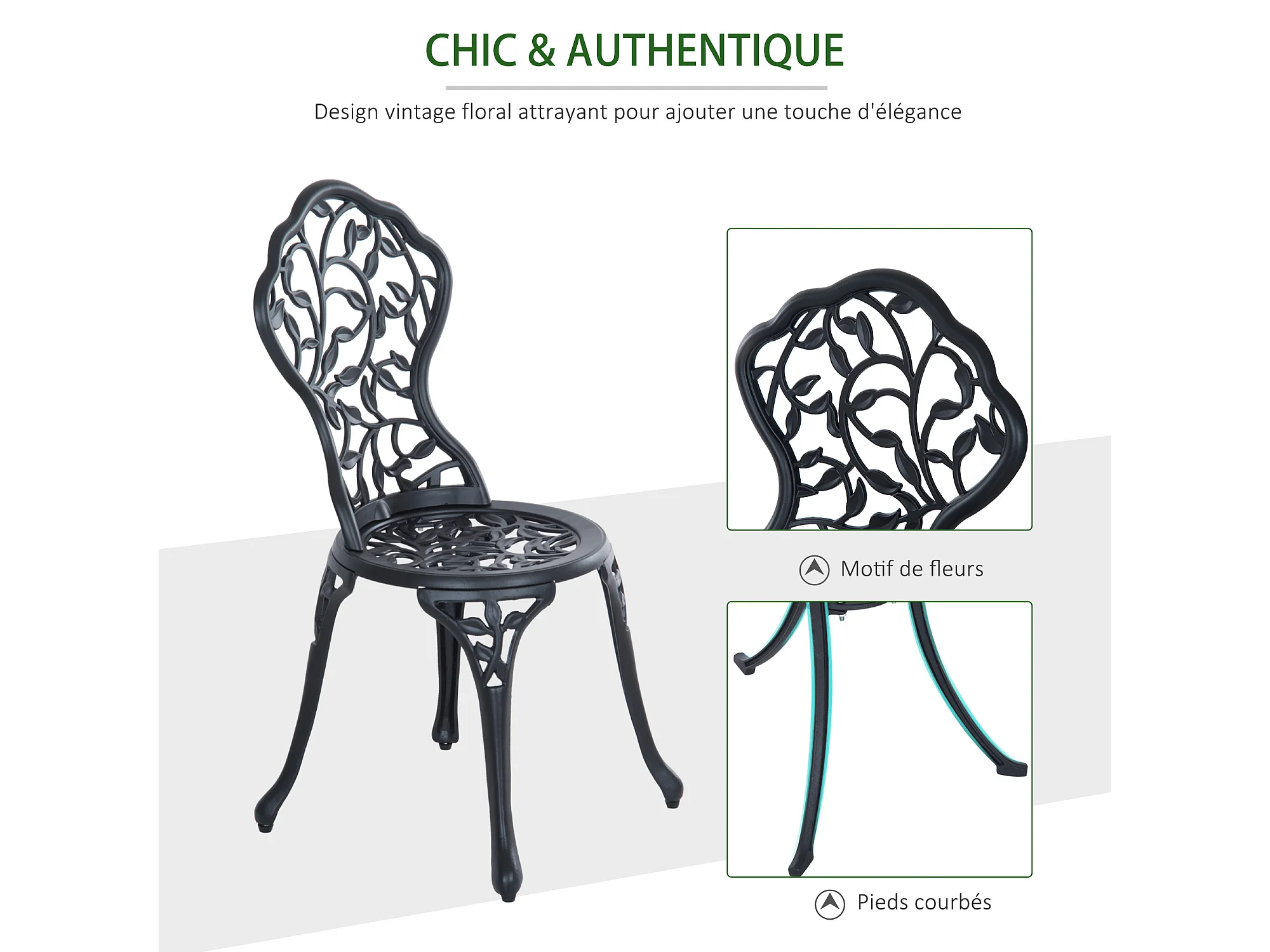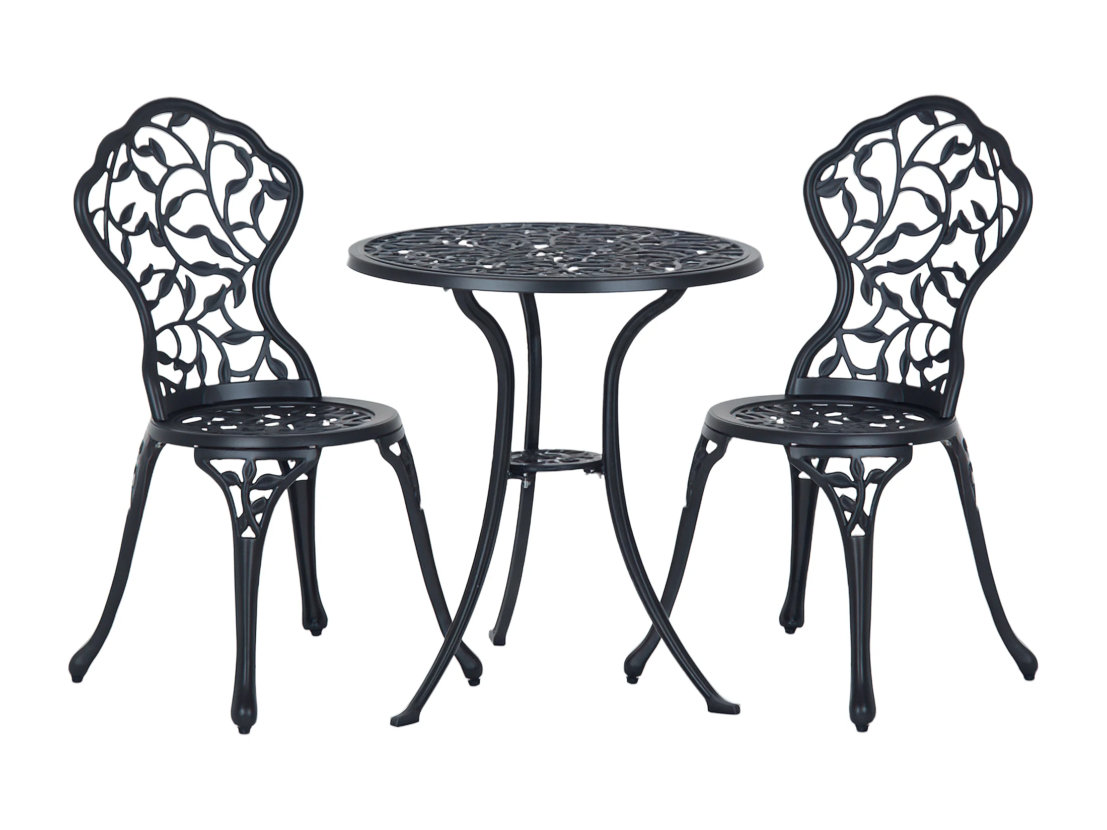 Ensemble salon de jardin 2 places avec table ronde style rétro fonte alu noir