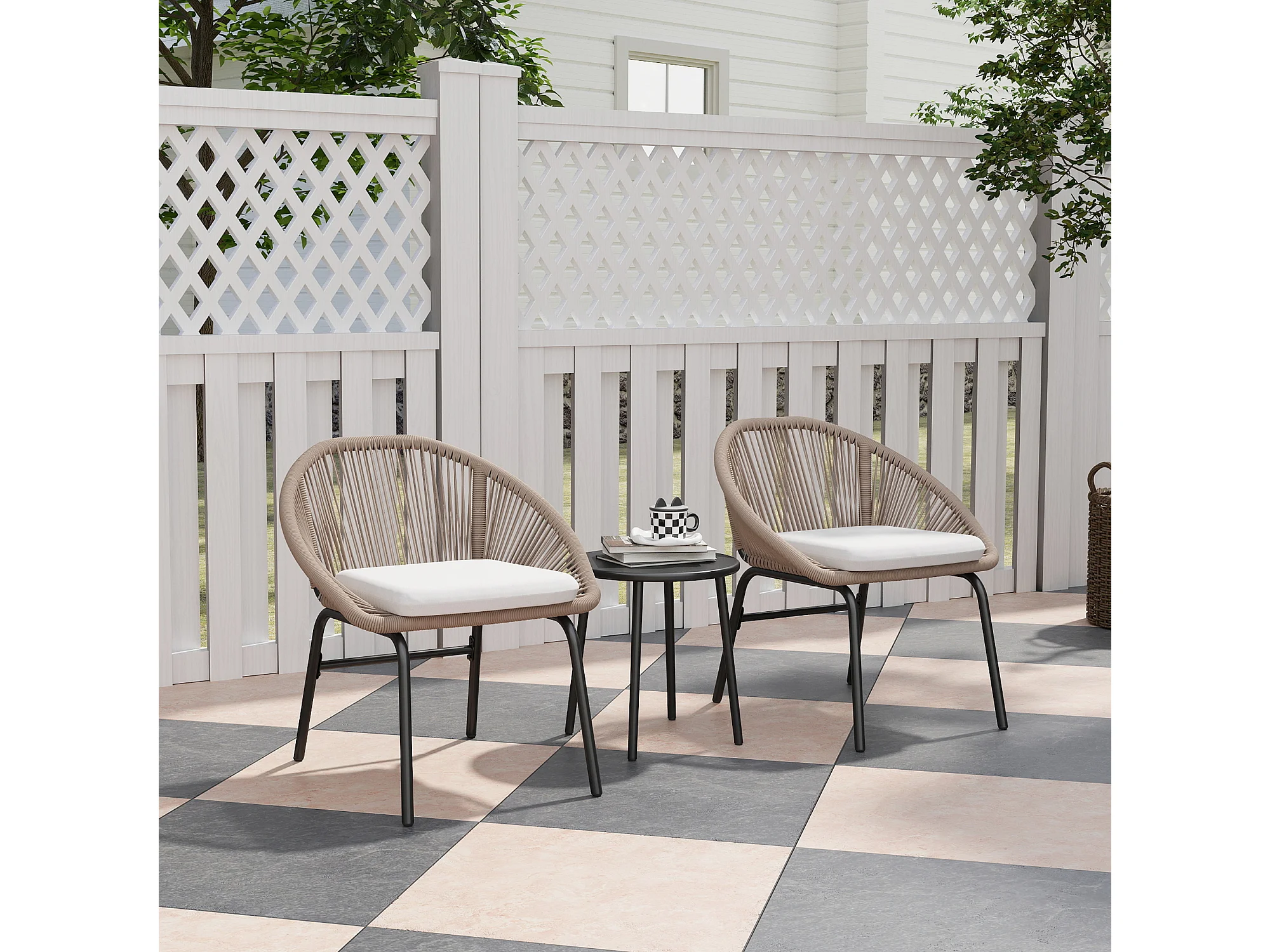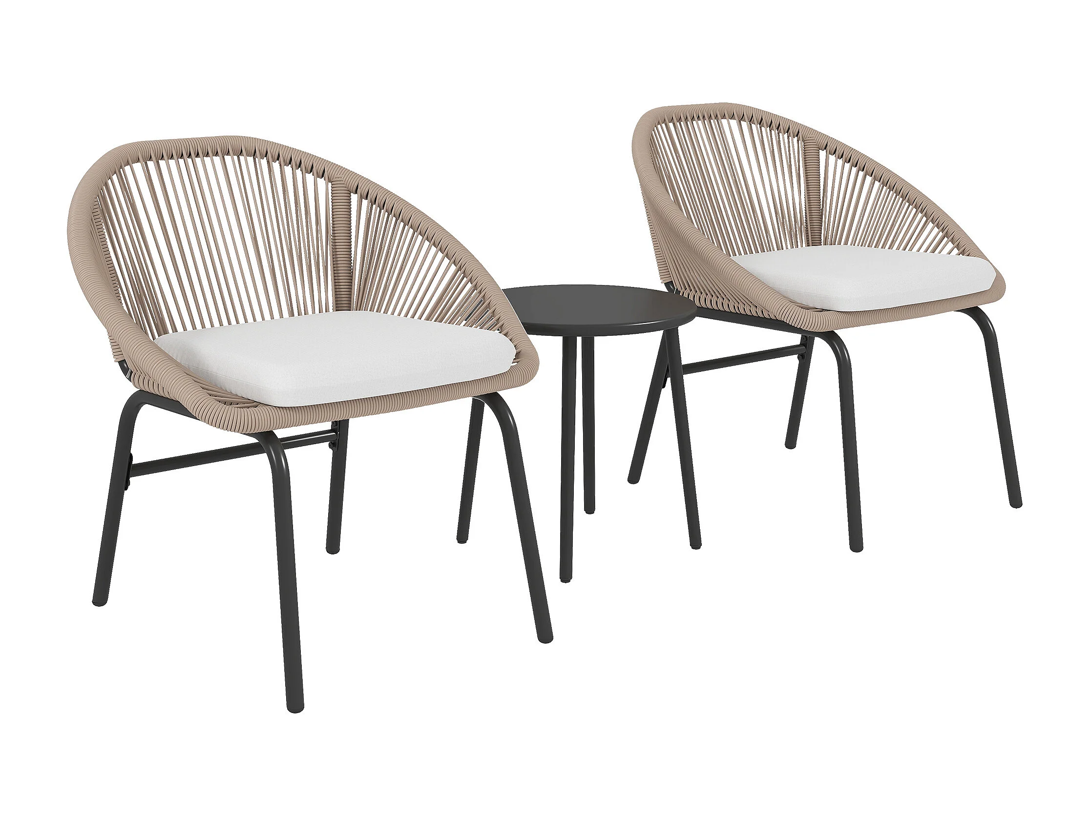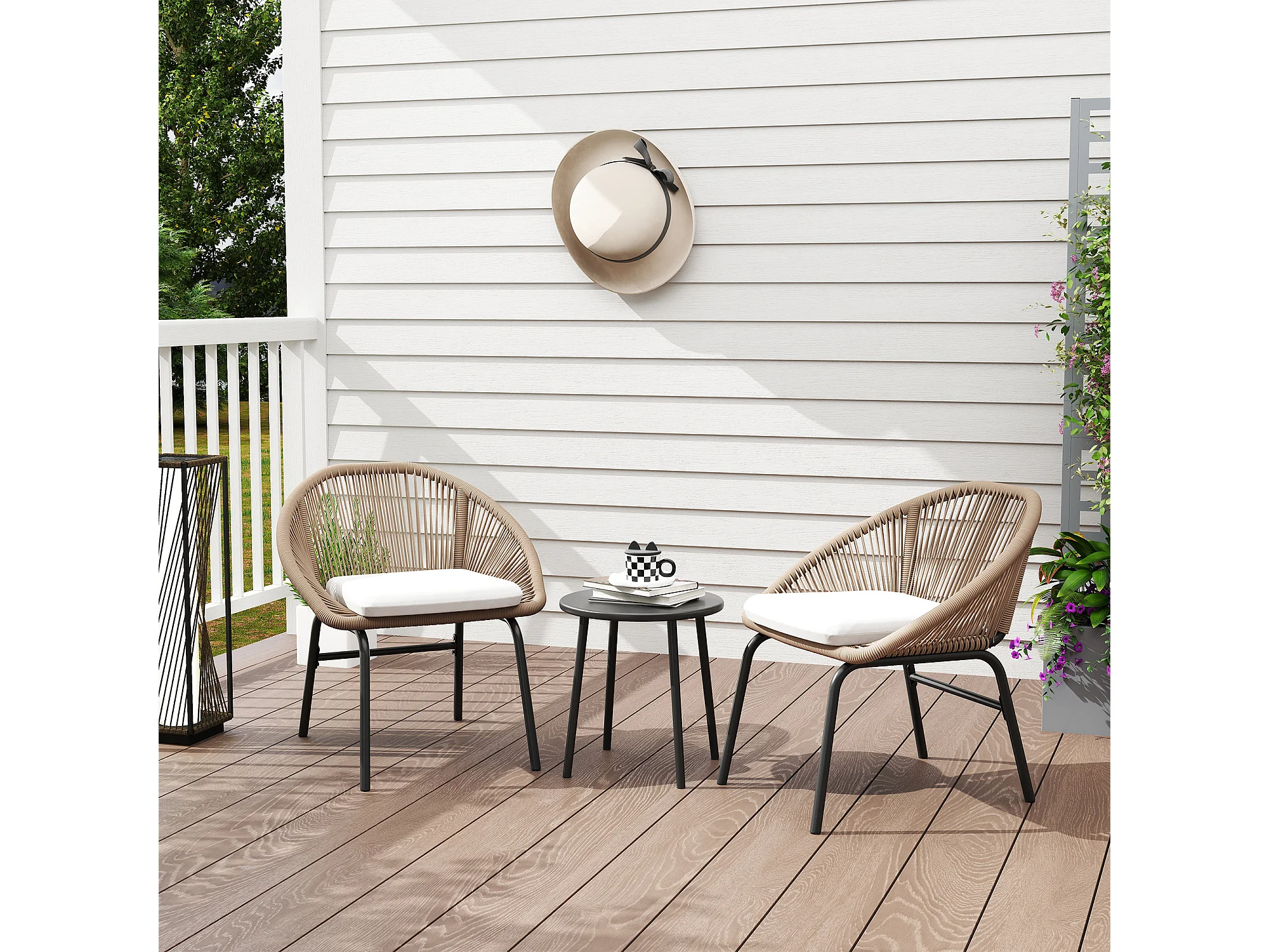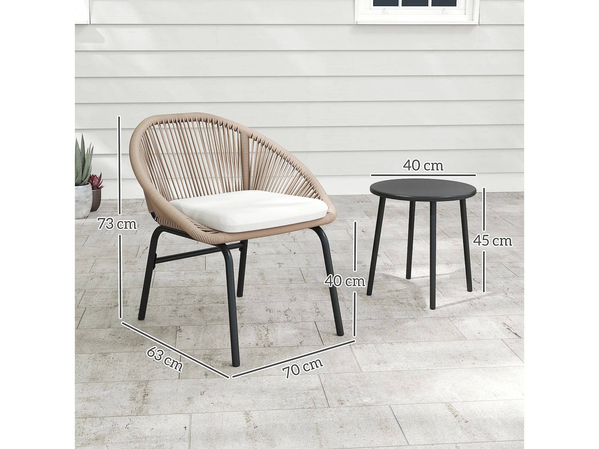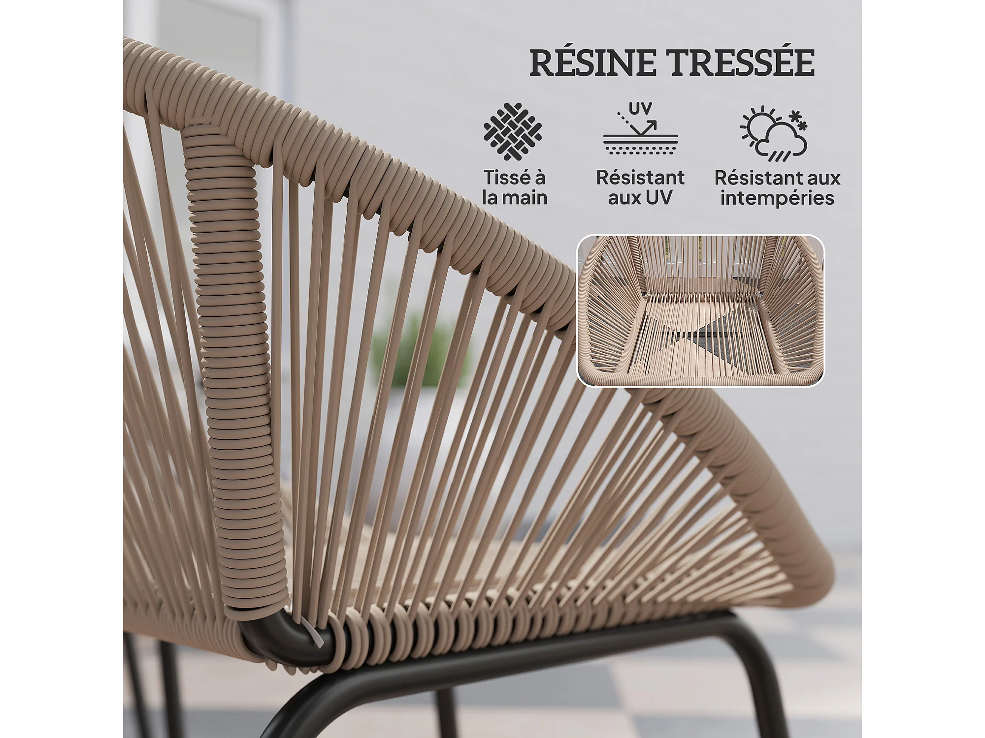 Ensemble salon de jardin 3 pièces 2 personnes avec coussins kaki