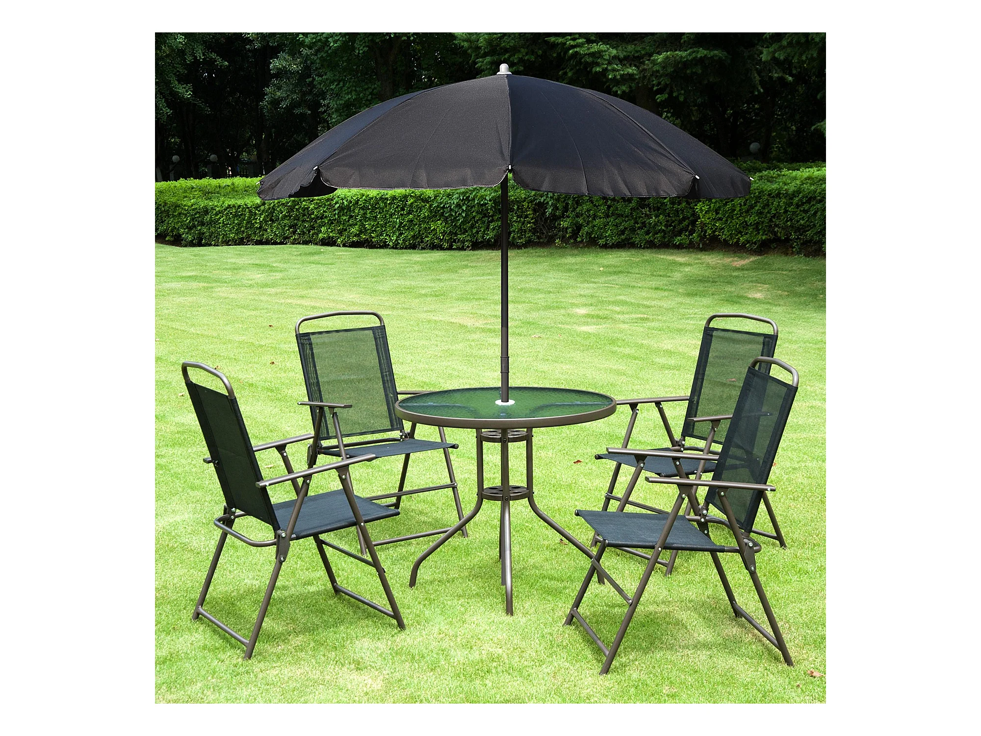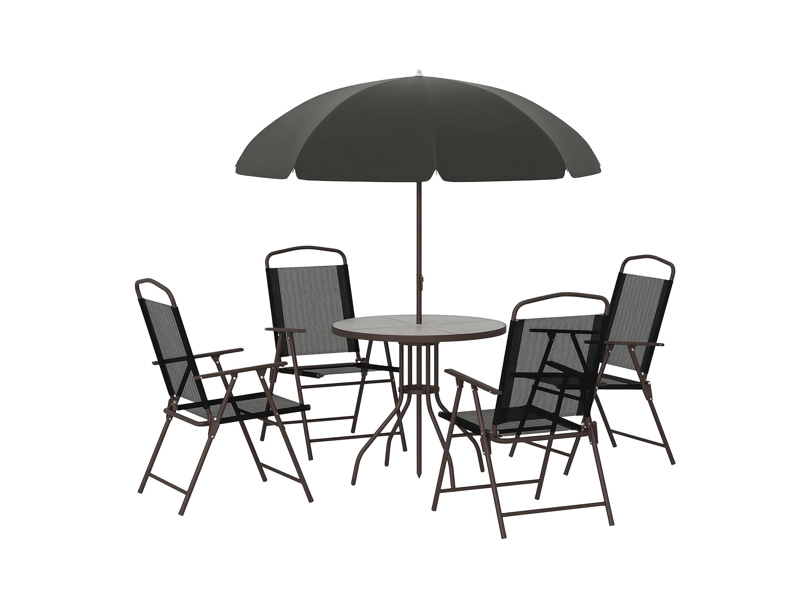 Ensemble salon de jardin 6 pcs - table ronde + 4 chaises pliables + parasol - acier époxy café textilène polyester noir