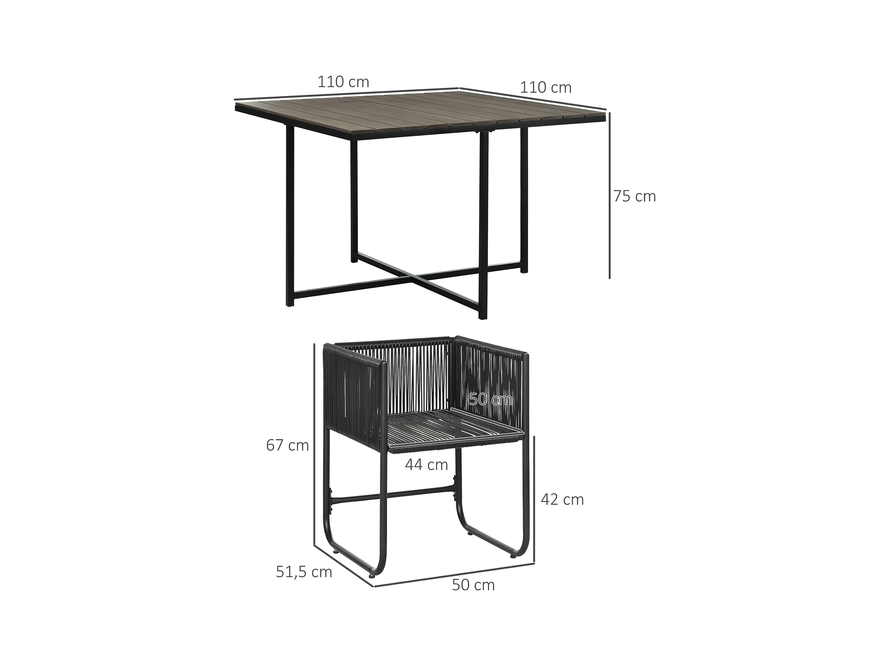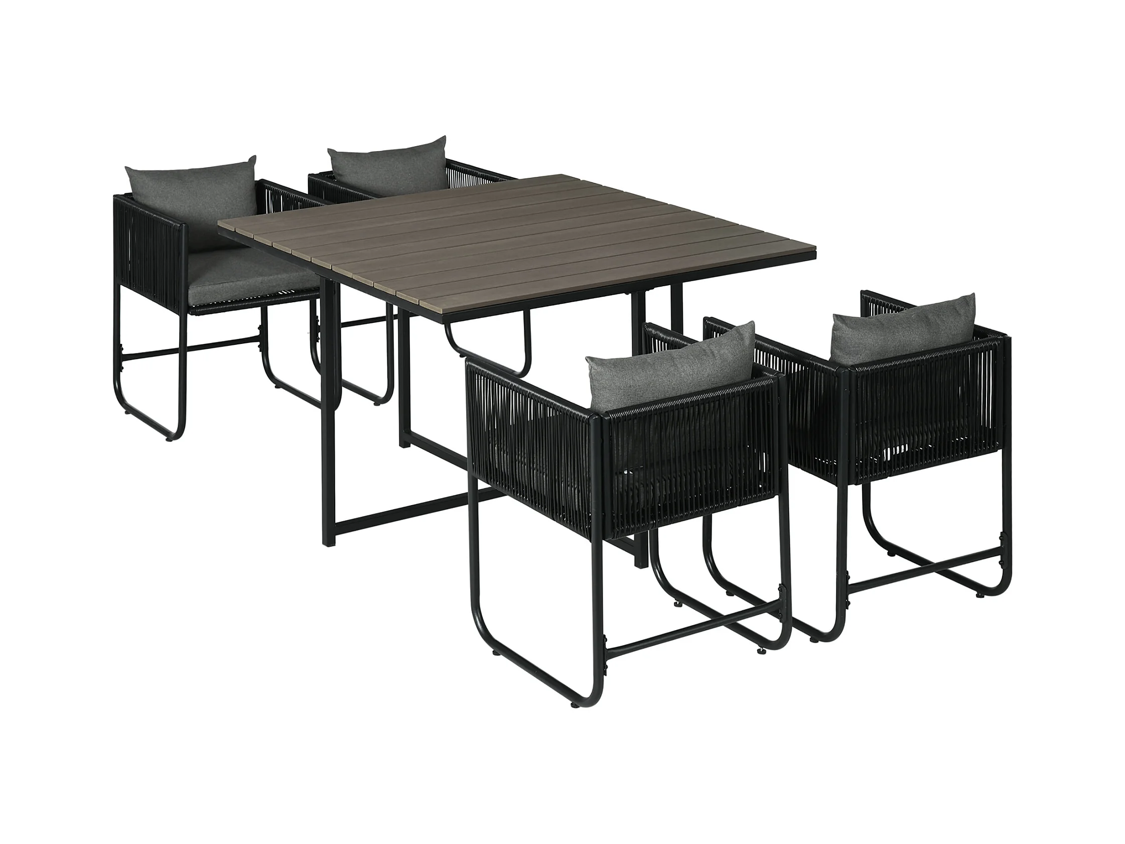 Ensemble salon de jardin encastrable 4 personnes 5 pièces - coussins déhoussables - métal résine filaire noir gris