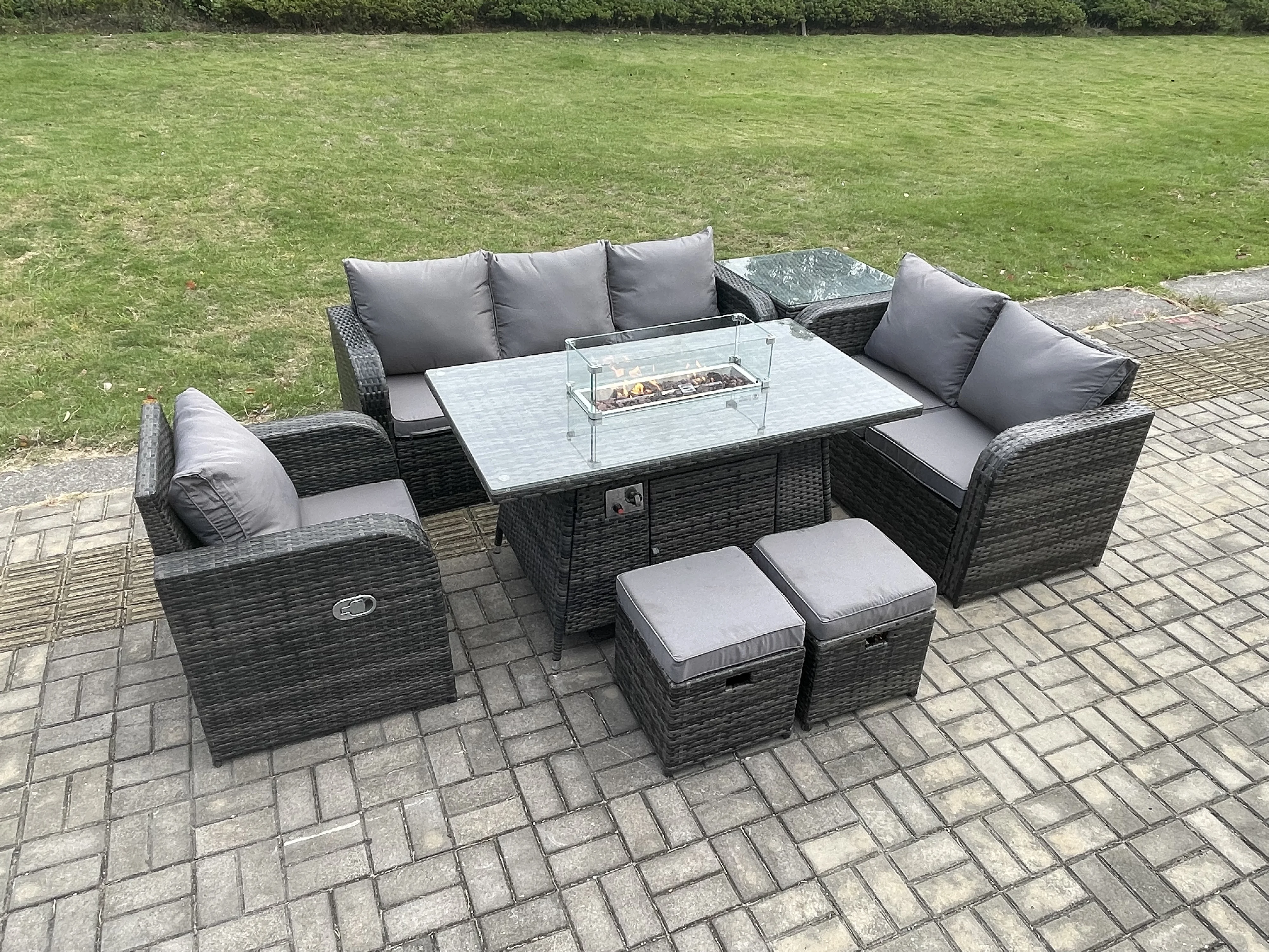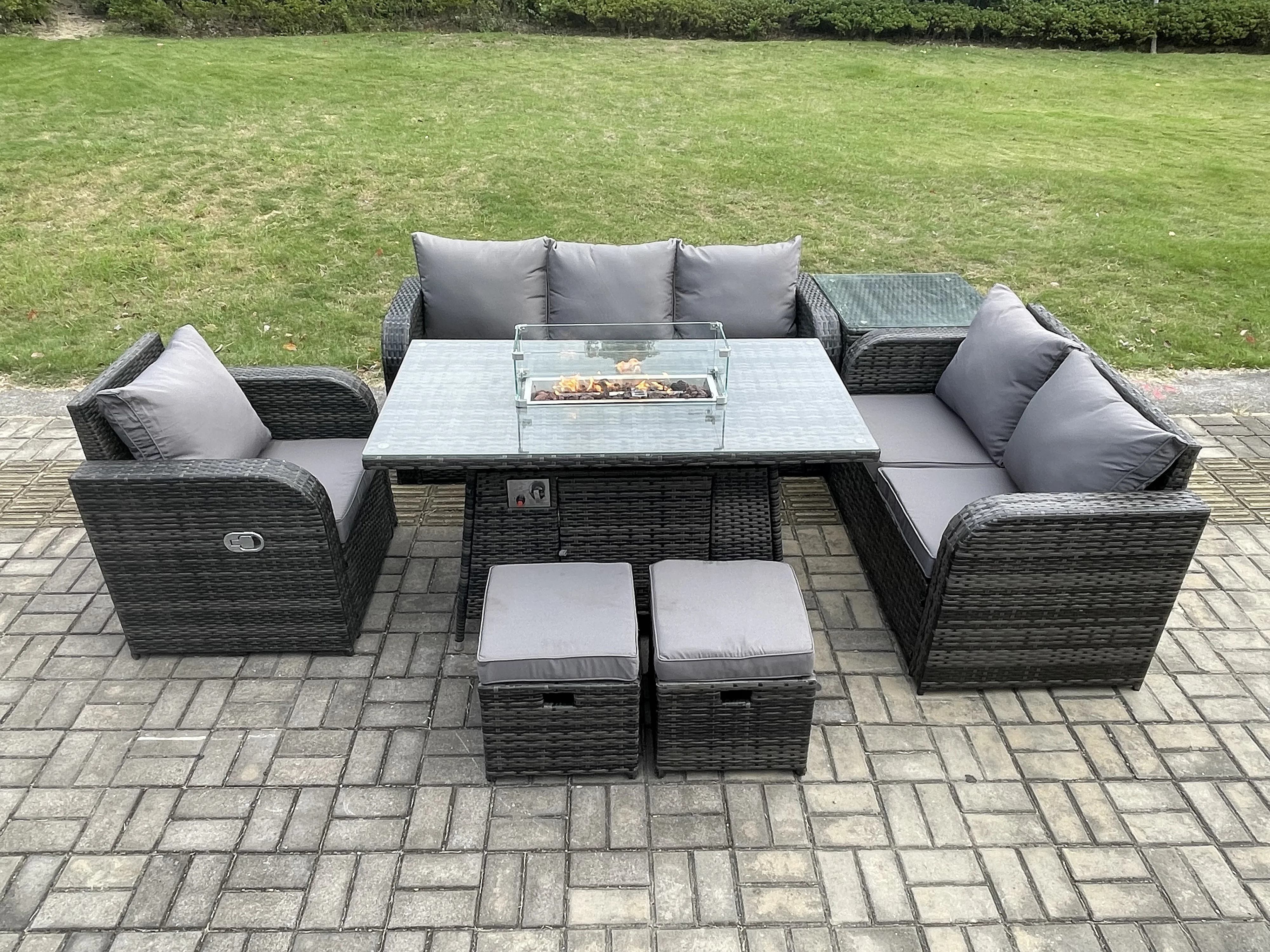 Ensemble Salon de Jardin Extérieur en polyrotin Table de foyer à gaz et Canapé Fauteuil avec Table d'appoint 2 Petits tabourets