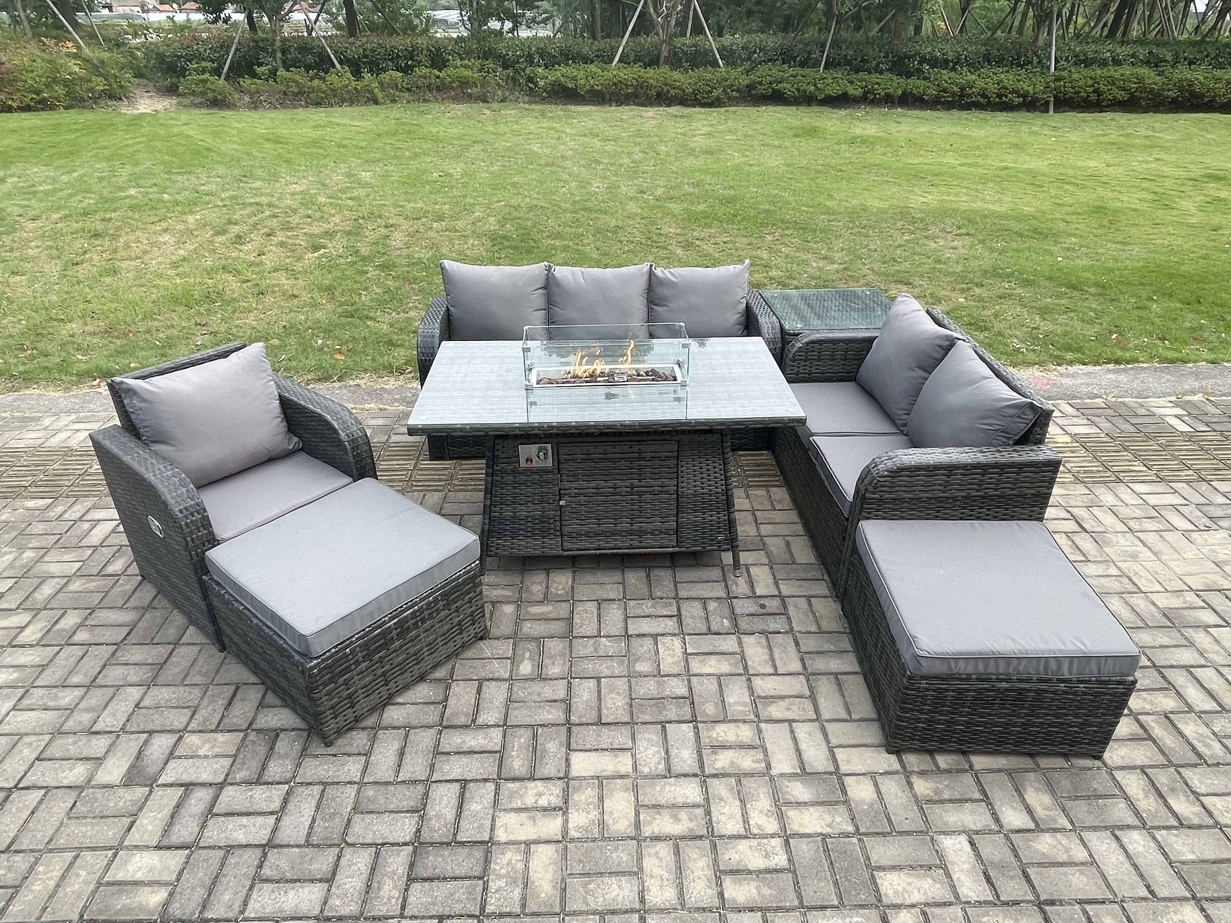 Ensemble Salon de Jardin Extérieur en polyrotin Table de foyer à gaz et Canapé Fauteuil avec Tables d'appoint 2 Grand tabourets