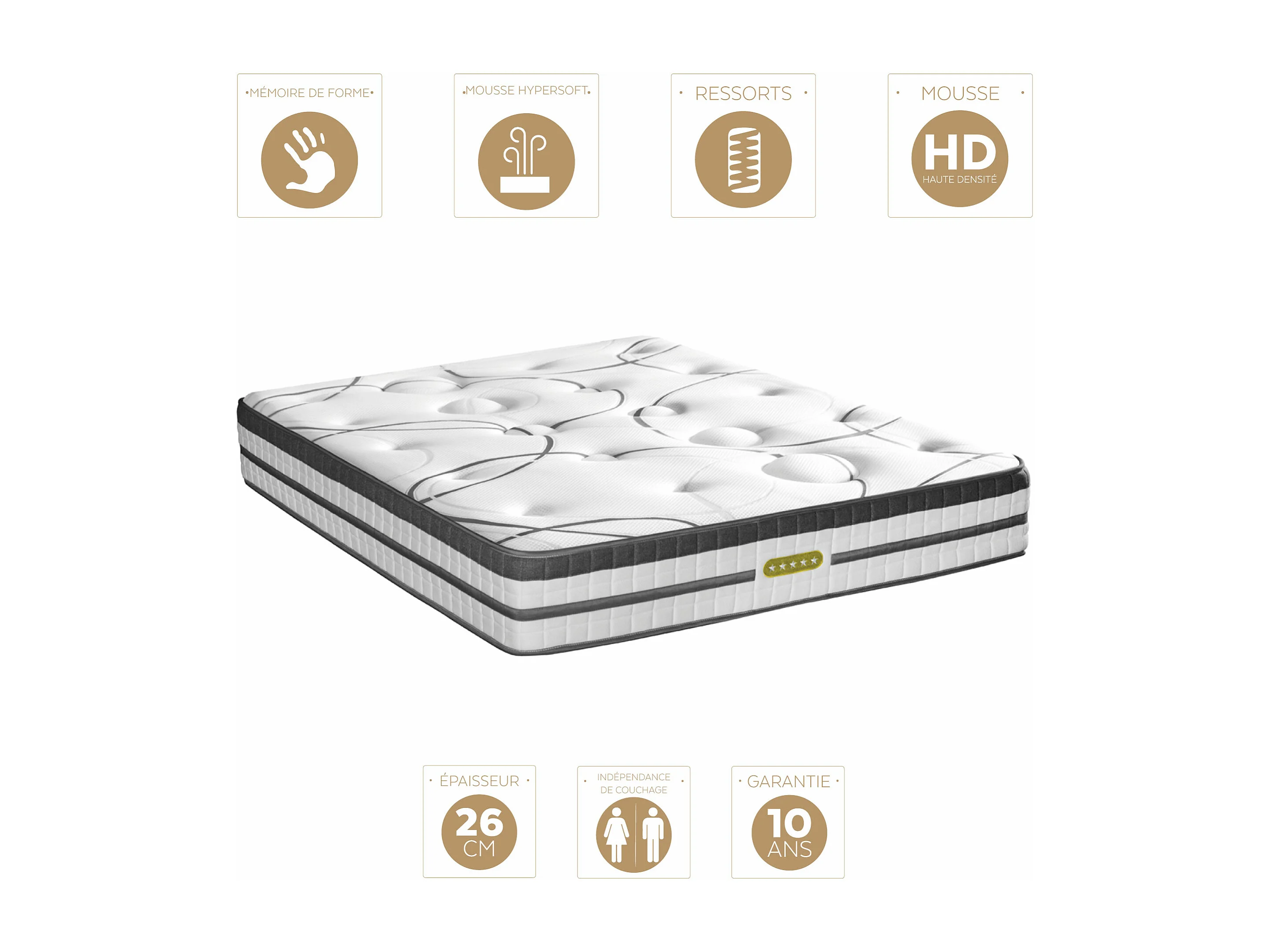 Ensemble sommier bois et Matelas Concorde Ressorts ensachés Accueil Mémoire 26cm 160x200cm