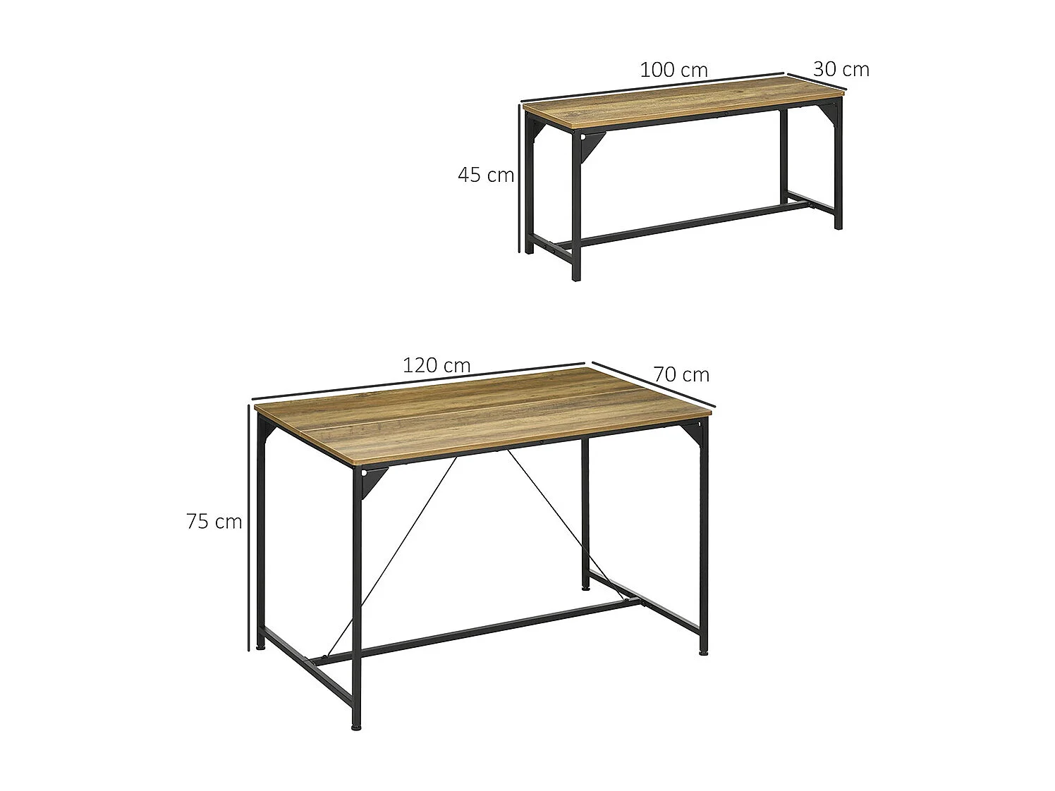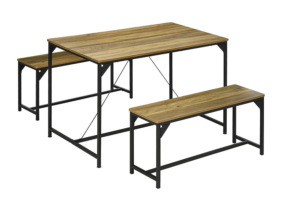 Ensemble table à manger et 2 bancs cadre en acier 4 personnes pour cuisine salle à manger salon naturel et noir