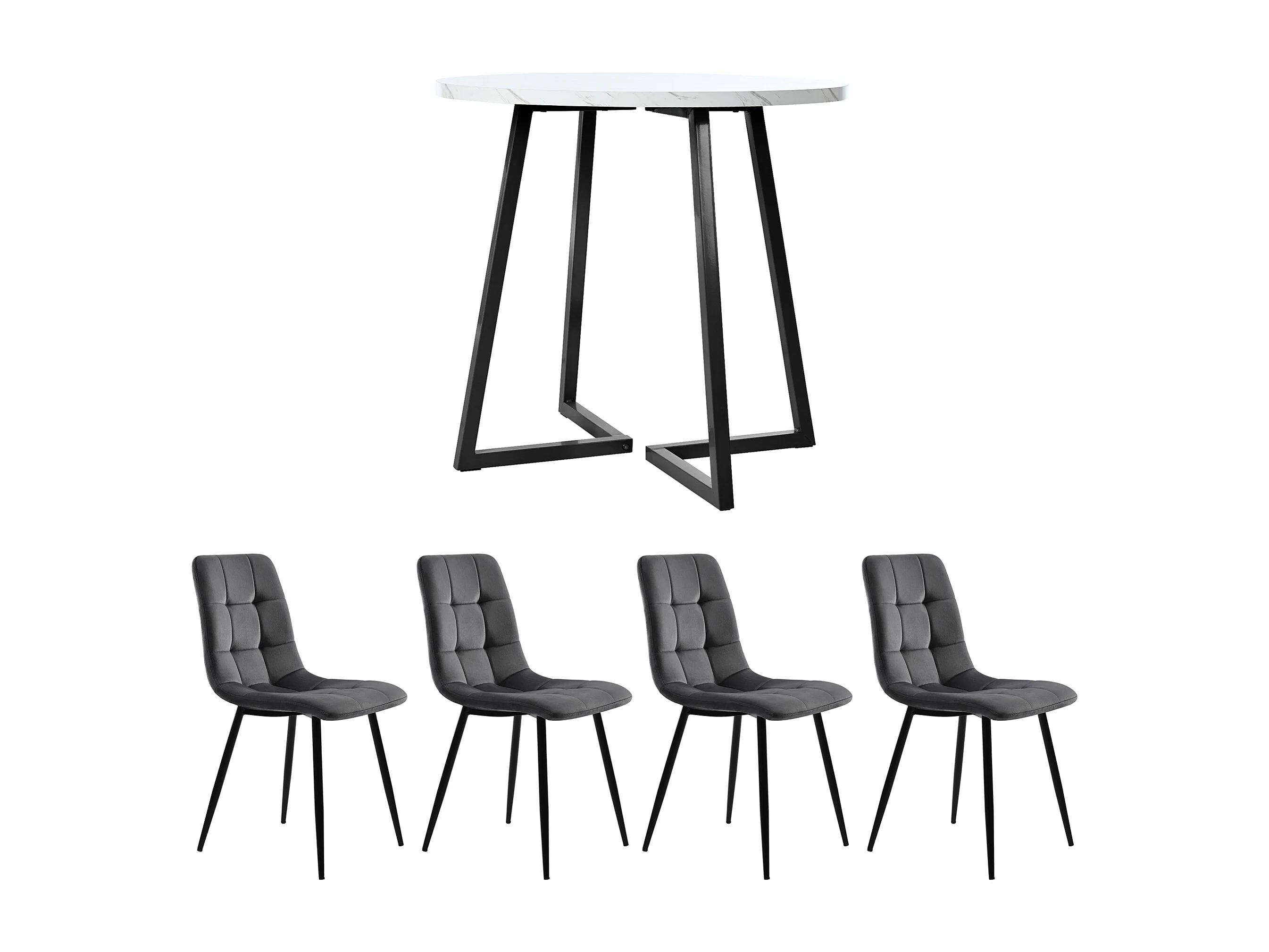 Ensemble table a manger ronde 80x80x75 cm + 4 chaises en velours gris foncé - pieds en métal noir