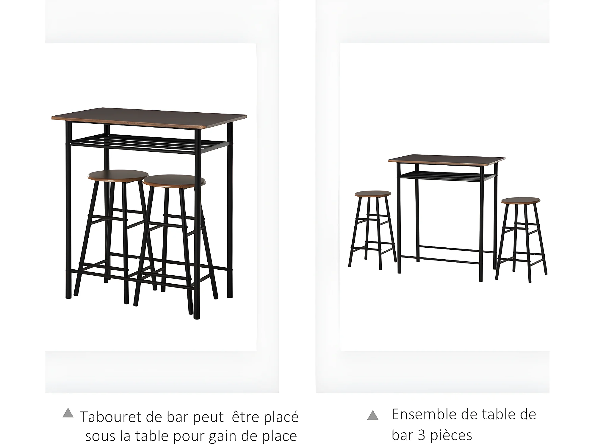 Ensemble table bar et 2 tabourets TRAPANI bois et noir