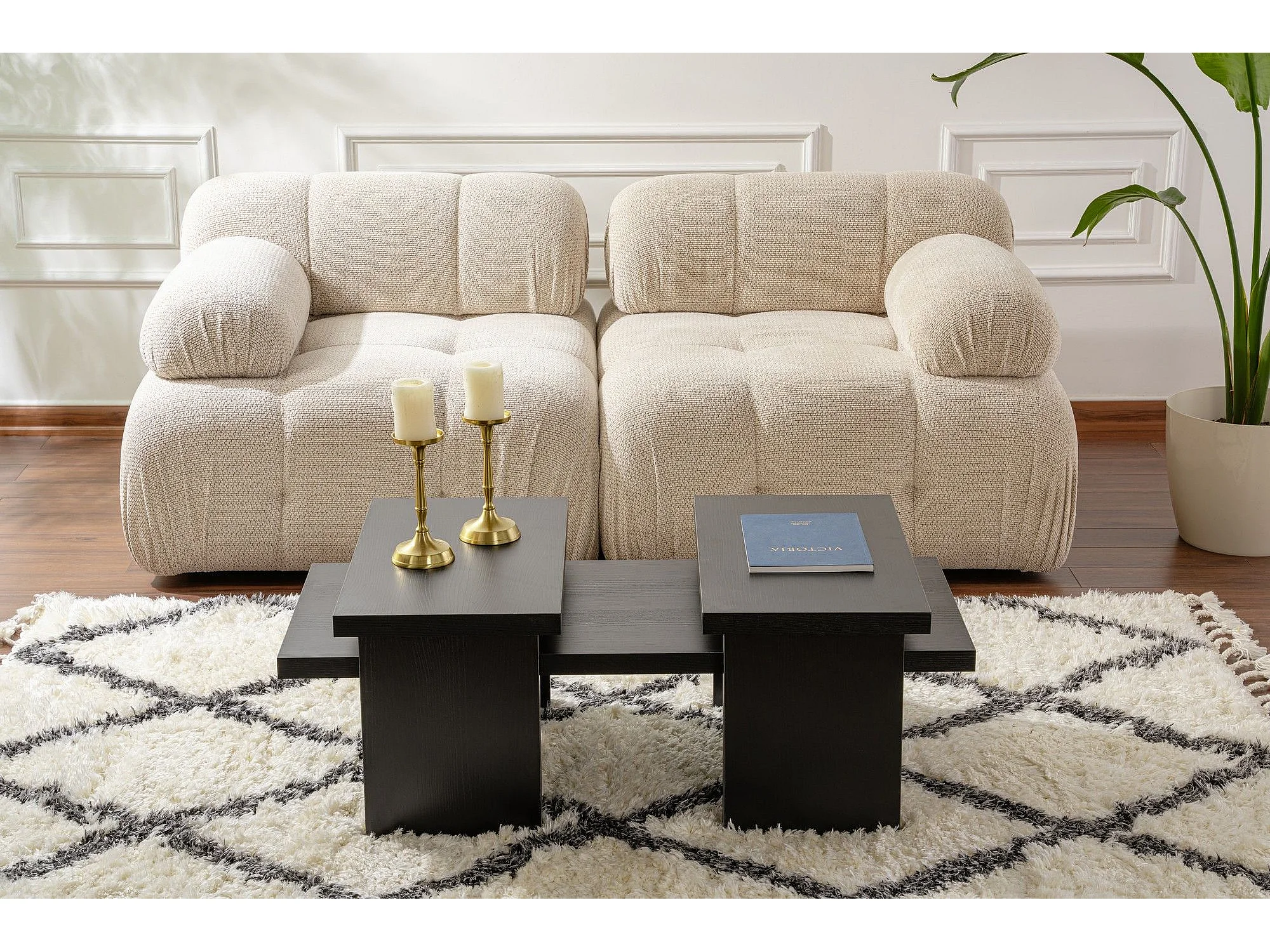 Ensemble table basse et 2 bouts de canapés gigognes Bernin Bois Noir